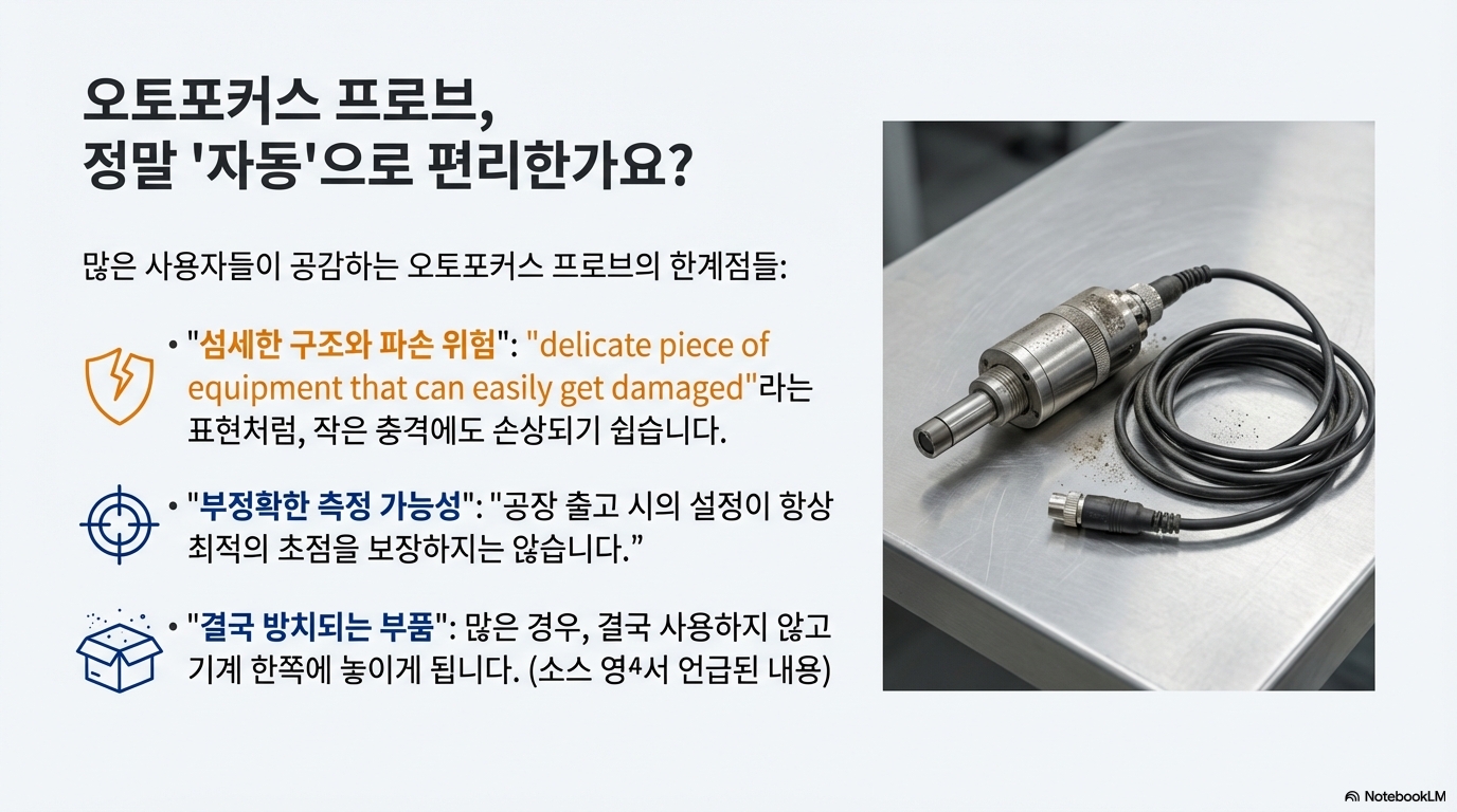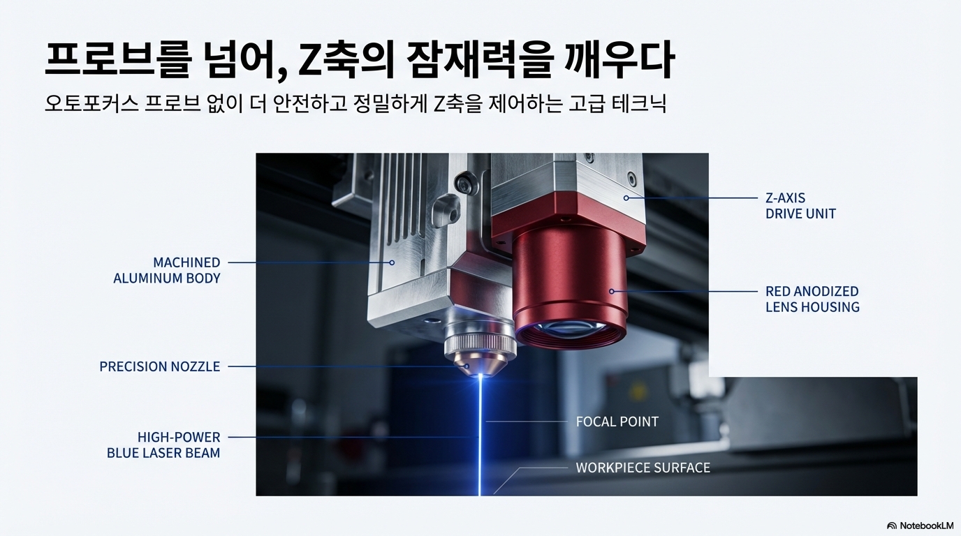 레이저 커터를 사용해 보셨다면 아마 공감하실 겁니다. 기계에 기본으로 달려 나오는 자동 초점 펜(probe) 말이죠. 항상 어딘가에 부딪혀 부러질까 조마조마하고, 작업 흐름의 핵심인 초점 설정 과정이 번거롭게 느껴질 때가 많습니다. 이 섬세하고 파손되기 쉬운 부품은 많은 사용자들에게 고질적인 불편함을 안겨주곤 합니다.
