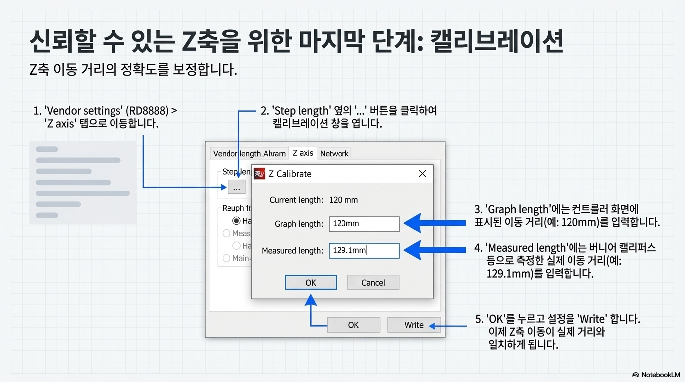 이제 기계의 리셋 버튼을 누르면 정교한 자동 원점 설정 과정이 시작됩니다. 레이저 헤드가 X, Y축의 원점을 찾는 동안, Z축 테이블은 상단으로 끝까지 올라가 리미트 스위치를 누릅니다. 그 후 약간 아래로 내려왔다가 다시 위로 올라가 스위치에 부드럽게 닿은 뒤, 마지막으로 아주 천천히 아래로 내려오면서 스위치가 정확히 떨어지는 지점을 찾아냅니다. 바로 그 지점이 여러분의 새로운 Z=0 기준점이 되는 것입니다.