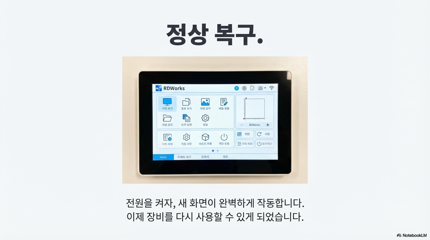 거의 4년 동안 아무 문제 없이 든든하게 제 역할을 해주던 장비가 갑자기 멈춰버리는 것만큼 당황스러운 일도 없습니다. 수명을 조금이라도 늘려보겠다고 정성껏 붙여둔 화면 보호 필름이 무색하게도, 제 오랜 파트너인 레이저 커터의 화면이 어느 날 갑자기 까맣게 변해버렸을 때, 저도 바로 그런 좌절감을 느꼈죠. 하지만 이 답답한 경험은 오히려 제 장비의 숨겨진 능력을 발견하게 해주는 놀랍고도 매우 유용한 계기가 되었습니다.