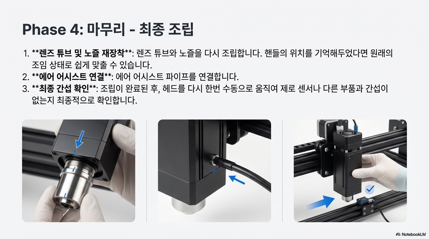 일반적인 레이저 커터는 X축과 Y축을 따라 헤드가 물리적으로 움직이며 재료를 가공합니다. 하지만 이 기계에는 그런 거대한 움직임이 없습니다. 대신 '갈보 헤드(Galvo Head)'라는 장치 안에 모든 비밀이 숨어있습니다. 레이저 빔은 헤드 내부에 있는 아주 작은 X 미러와 Y 미러에 반사됩니다. 이 두 개의 거울이 초고속으로 각도를 조절하며 빔의 경로를 바꾸고, 마치 펜으로 그림을 그리듯 정밀하게 표면을 마킹합니다. 이러한 설계는 기계적 유지보수에 대한 걱정을 없애는 동시에, CO2 레이저와 같은 기계공학적 접근이 아닌, 오직 소프트웨어와 파라미터 제어를 통해 기계의 한계를 탐구해야 하는 새로운 도전을 제시합니다.