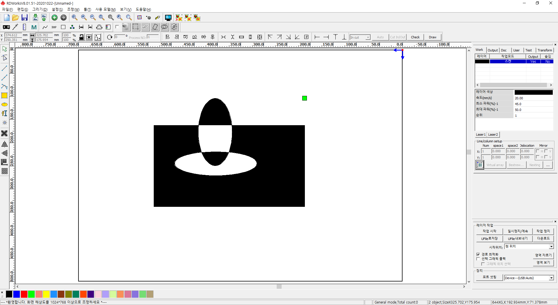 RDWorks의 단점은 부울대수(경로합, 차)연산을 지원하지 않는다는 점이다.