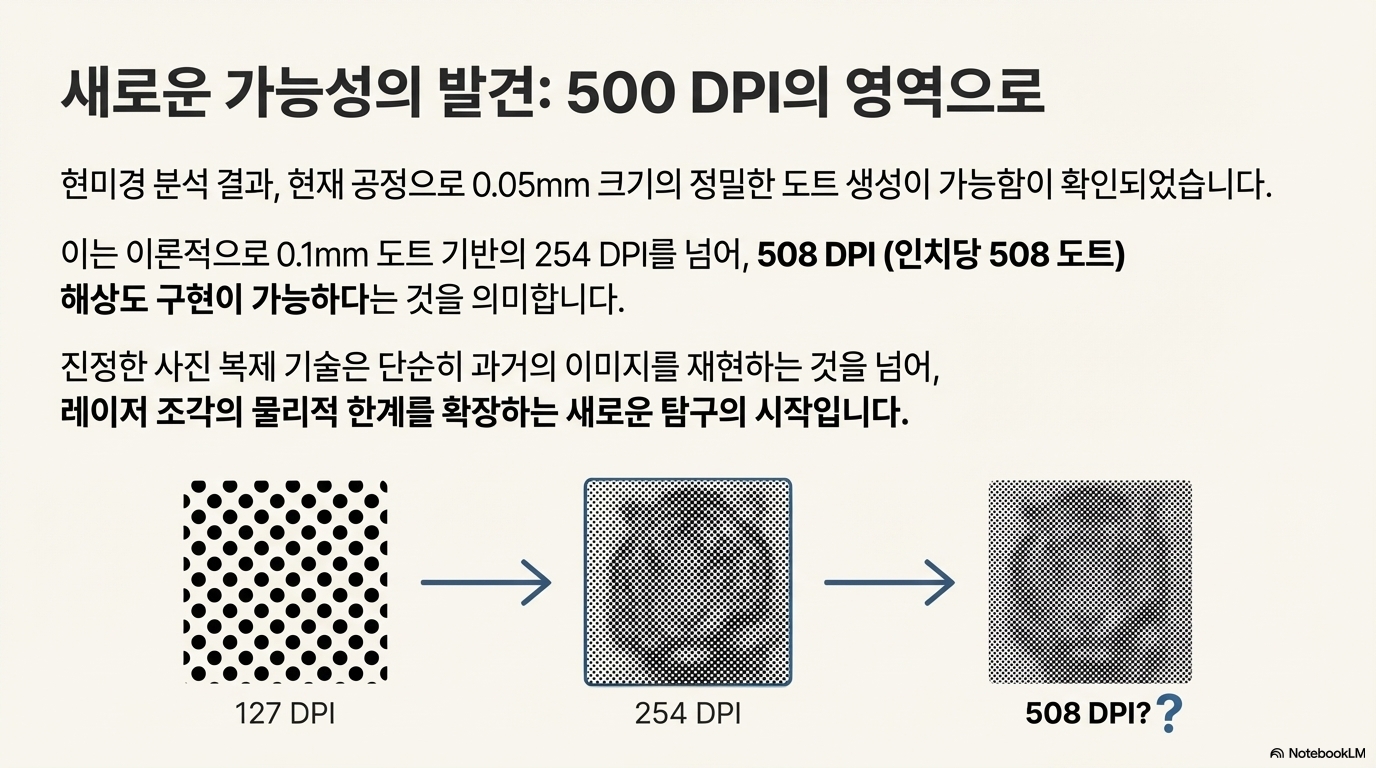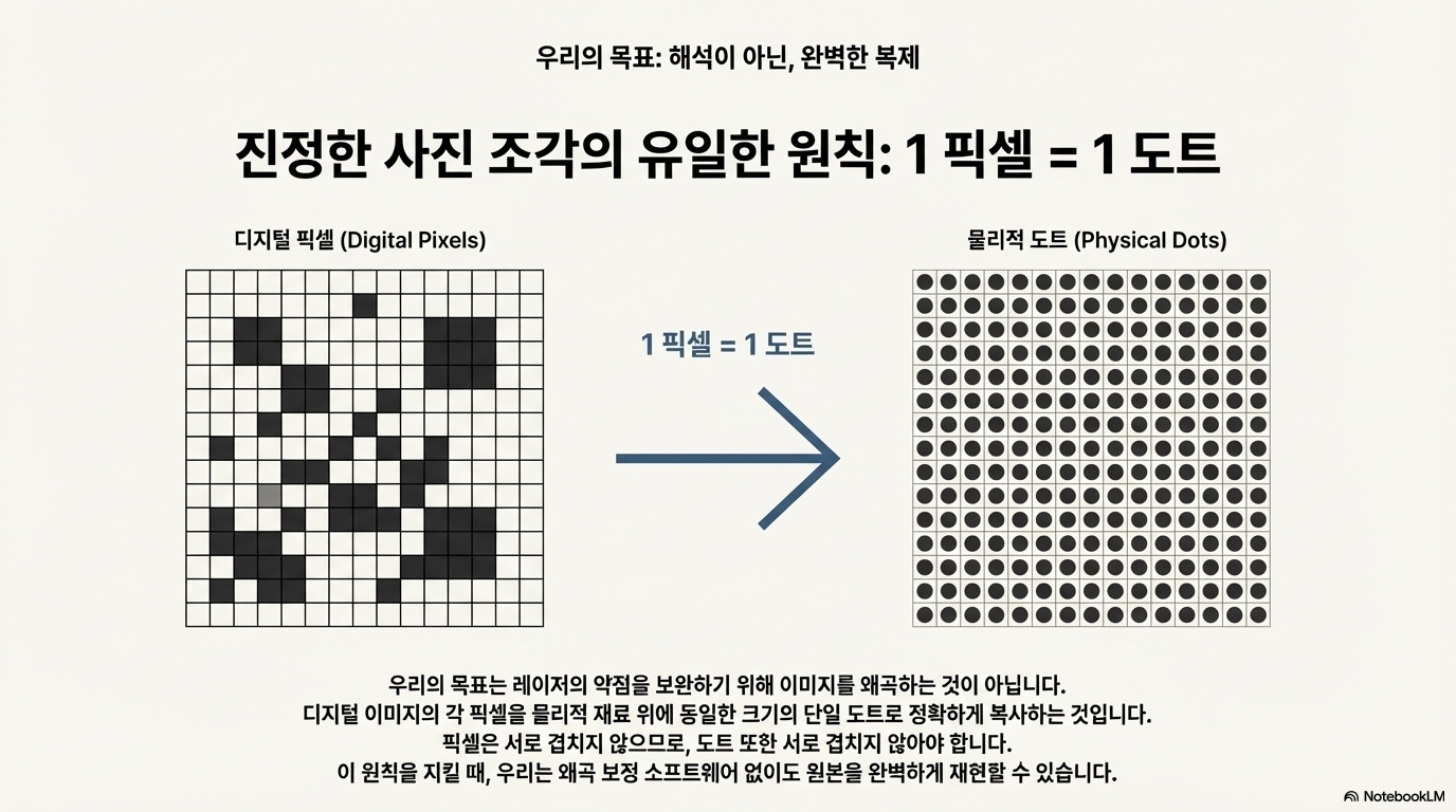 '진정한 사진 복제'란, 바로 이 디더링된 이미지의 픽셀 하나하나를 동일한 크기의 레이저 점 하나로 완벽하게 복사해내는 능력입니다.