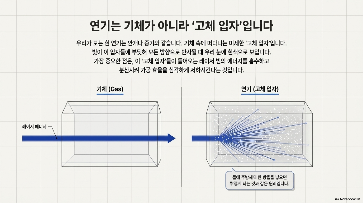 1. 연기는 '가스'가 아니라, 레이저를 막는 '고체 입자'입니다