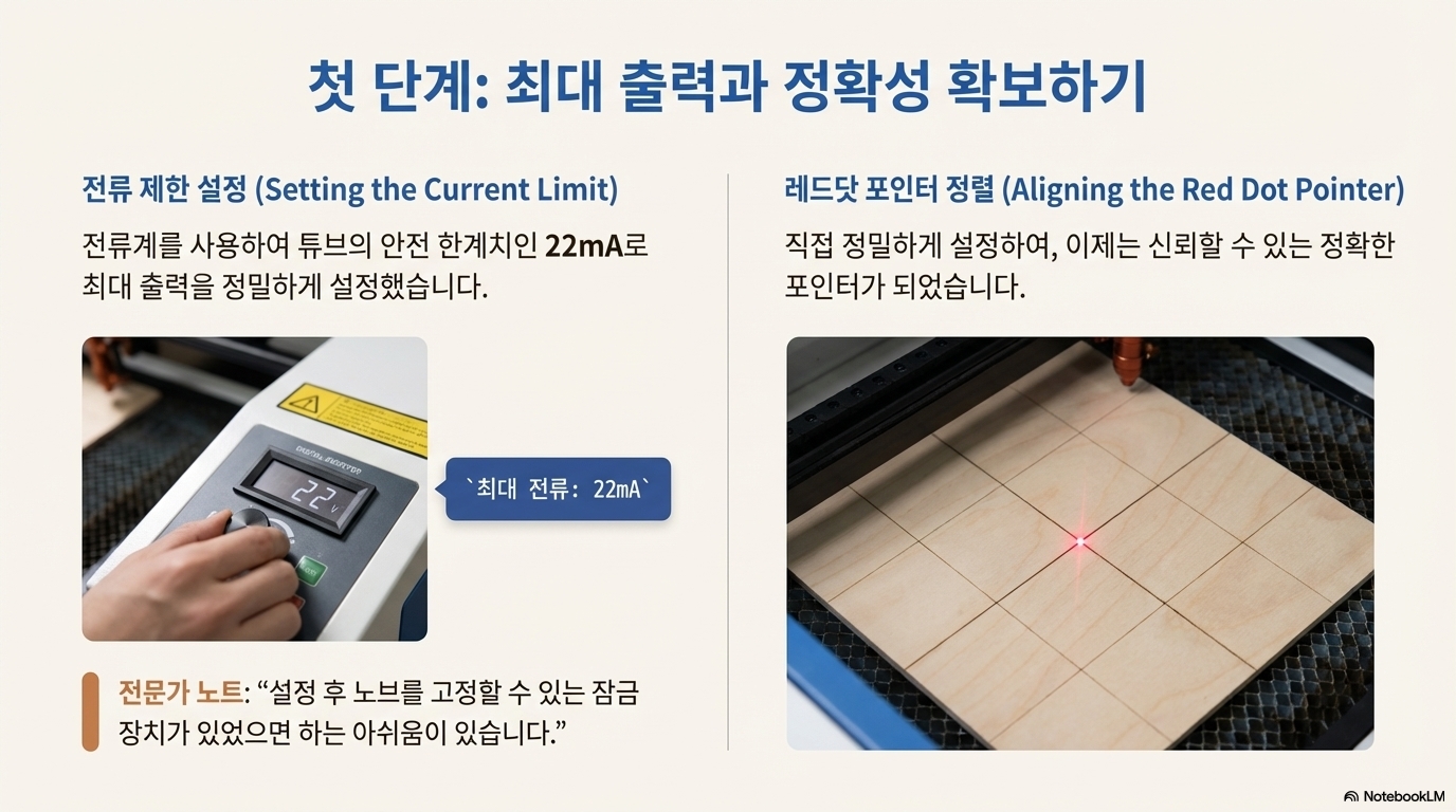 일반적으로 소프트웨어에서 레이저 출력을 100%로 설정하면, 기기가 가진 레이저 튜브의 최대 정격 전류를 초과하여 수명을 급격히 단축시킬 위험이 있습니다. 많은 사용자들이 이를 피하기 위해 출력을 80~90% 이하로 제한하여 사용하는 이유입니다.