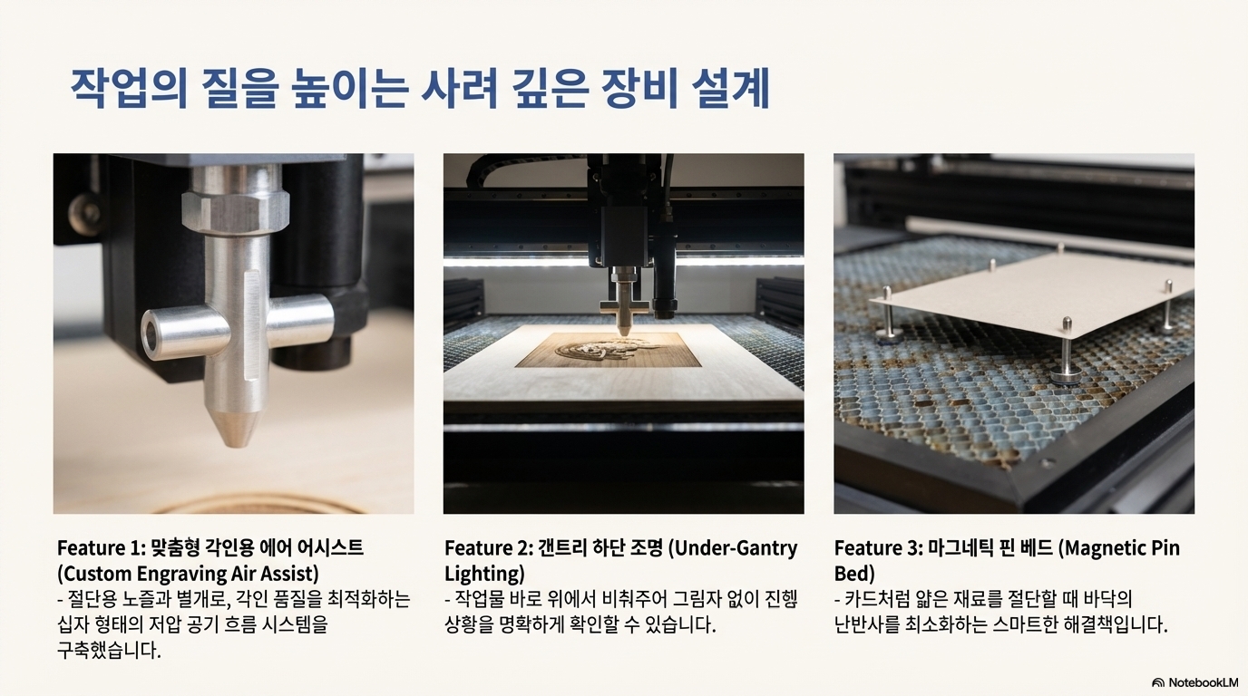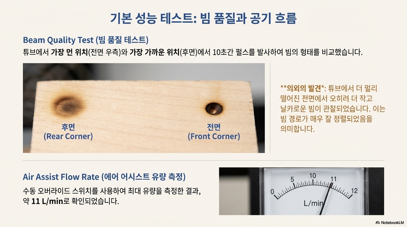 물론 작은 아쉬움도 있었습니다. 한번 설정한 노브가 실수로 돌아가는 것을 방지할 잠금장치가 있었다면 더 완벽했을 것입니다. 아마 제가 뭔가를 발명해야 할지도 모르겠네요. 하지만 이 작은 점을 감안하더라도, 레이저 튜브를 완벽하게 보호하는 이 기능은 매우 혁신적임에 틀림없습니다.