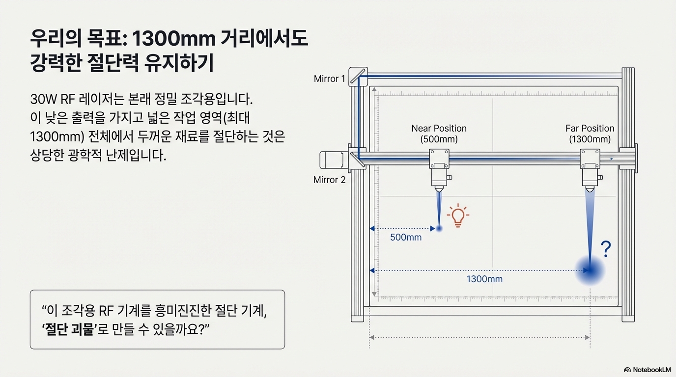 누구나 한 번쯤은 자신이 가진 도구의 한계를 시험해보고 싶다는 생각을 합니다. "이걸로 과연 어디까지 할 수 있을까?"라는 순수한 호기심. 여기, 평범한 30와트(W) 각인용 레이저 기계를 거대한 작업대 전체에서 두꺼운 재료를 잘라내는 '자르기 괴물'로 바꾸려는 한 남자가 있었습니다. 그의 목표는 저출력 레이저로 10mm 두께의 포플러 합판을 빠르고 깨끗하게 잘라내는 것이었습니다.