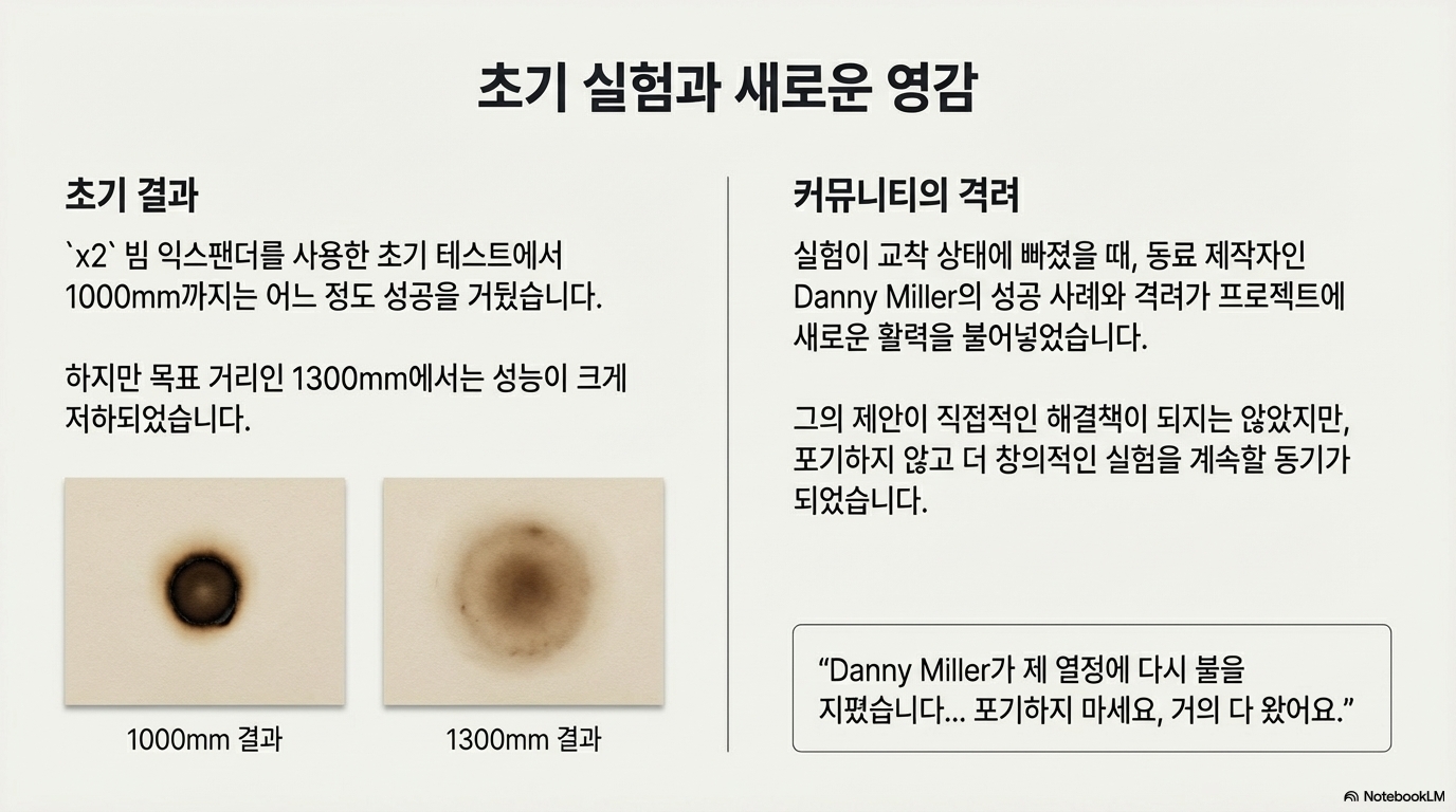 한 괴짜 발명가의 집념 어린 실험은 우리에게 혁신의 본질에 대한 깊은 통찰을 줍니다. 그의 여정은 승리를 향해 직선으로 나아가는 깔끔한 길이 아니었습니다. 오히려 렌즈 방향 같은 사소한 디테일이 극적인 차이를 만든다는 사실(네 번째 발견)을 깨닫고, 기계의 한쪽 끝에서만 작동하는 좌절스러운 **'비성공'**을 마주하는(두 번째 발견) 과정이었습니다.
