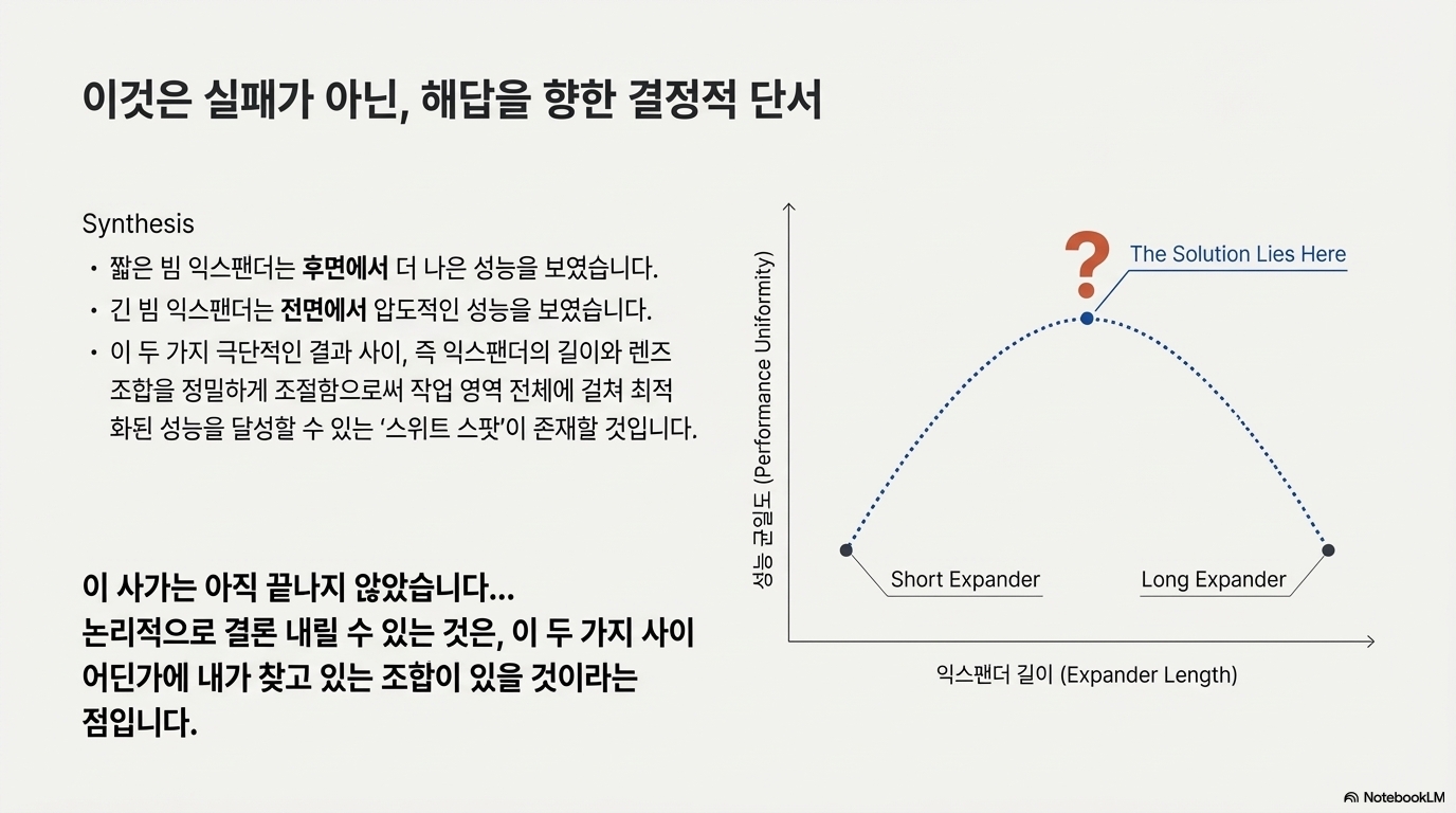 이러한 관점의 전환은 매우 중요합니다. '비성공'은 최종 목표를 달성하지는 못했지만, 그 과정에서 무엇이 효과가 있고 없는지에 대한 귀중한 데이터를 제공했음을 의미하기 때문입니다. 기계 앞쪽에서 성공한 설정과 뒤쪽에서 성공한 설정, 이 두 가지 상반된 '비성공'은 최종 해결책이 "이 두 극단 사이 어딘가에" 존재한다는 명확한 방향을 제시합니다.