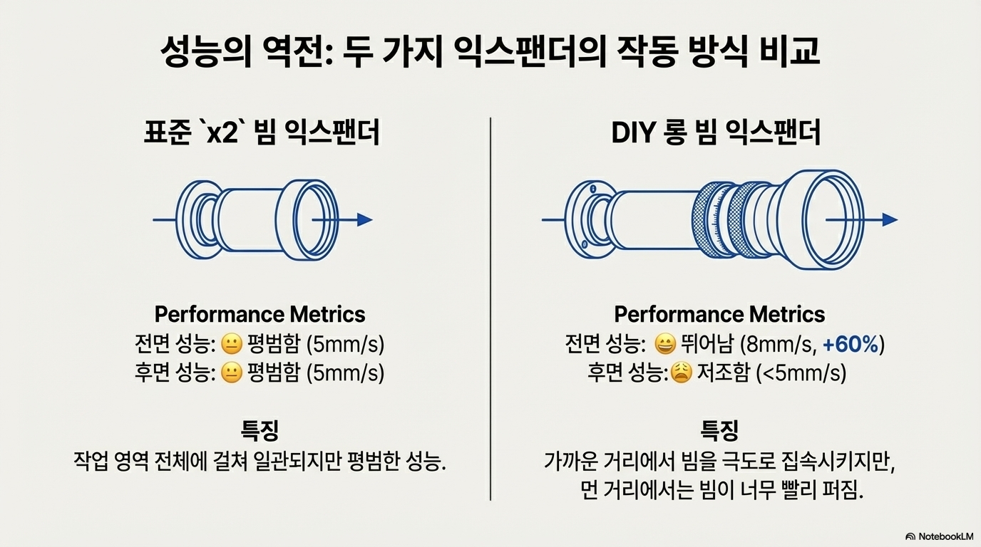 혁신의 과정은 종종 좌절의 연속입니다. 실험자는 한 렌즈 조합으로는 기계 앞쪽에서는 완벽한 절단이 가능했지만 뒤쪽에서는 결과가 엉망이었고, 다른 조합으로는 정반대의 결과가 나오는 답답한 상황에 직면했습니다. 언뜻 보기에 이것은 명백한 '실패'처럼 보입니다.