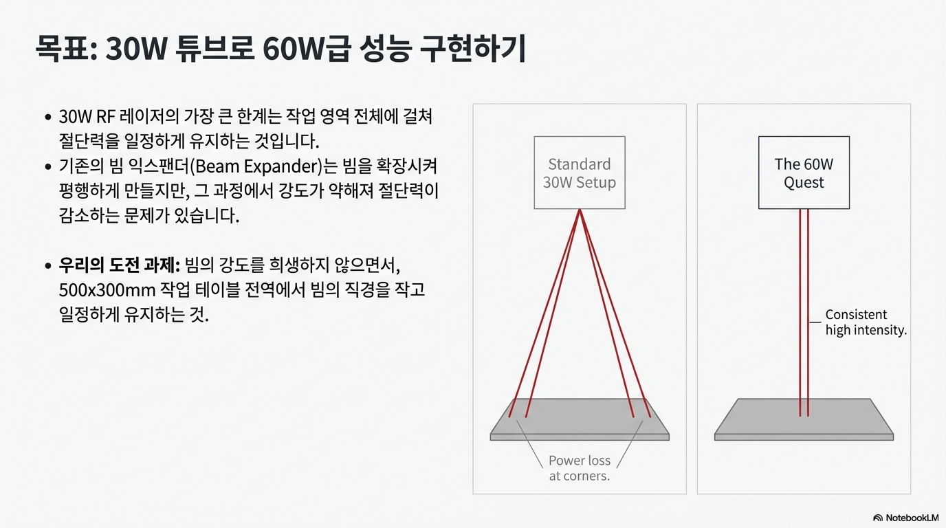 이 글은 오직 실험과 관찰에만 의지해 자신의 30W 레이저 기계의 성능을 60W급으로 끌어올린 그의 여정을 따라갑니다. 그 과정에서 발견한 가장 놀랍고, 직관에 반하며, 강력한 교훈 세 가지를 통해 우리가 기술적 한계를 대하는 태도에 대한 깊은 통찰을 얻게 될 것입니다.