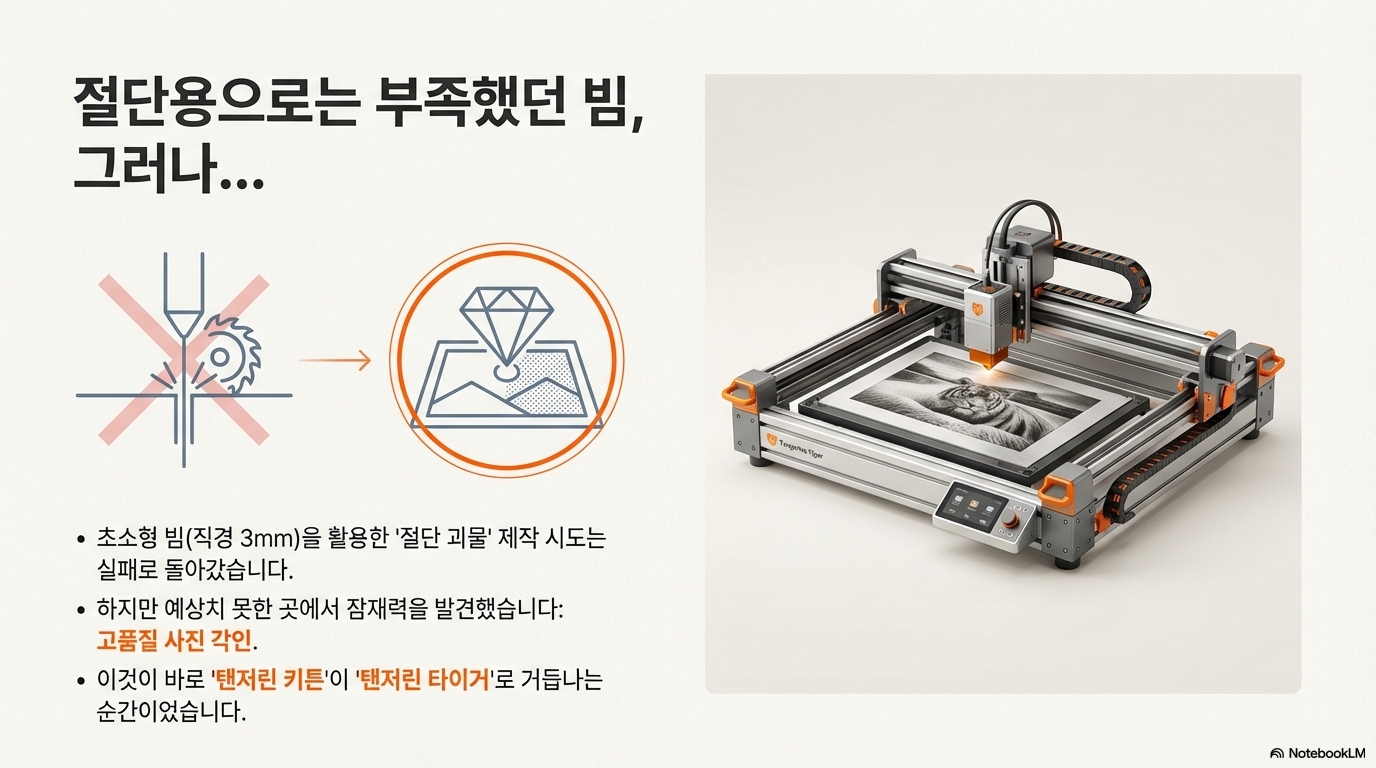 메이커 여러분, 프로젝트를 진행하다 보면 계획이 생각처럼 흘러가지 않는 순간이 찾아오곤 합니다. 저 역시 '절단 괴물(cutting monster)'을 만들겠다는 야심 찬 목표를 세웠지만, 결과는 예상과 전혀 달랐죠. 하지만 실망하기는커녕, 저는 이 실패한 실험 속에서 우연히 '조각의 괴물(engraving monster)'을 발견했습니다.