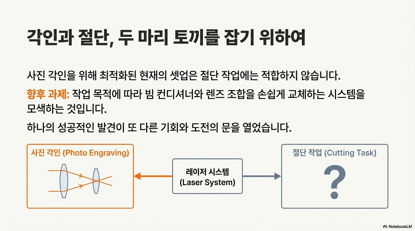 절단에는 부적합했던 이 극도로 작고 날카로운 점을 만드는 능력이, 역설적으로 사진 조각이라는 다른 분야에서 완벽한 무기가 된 것입니다.