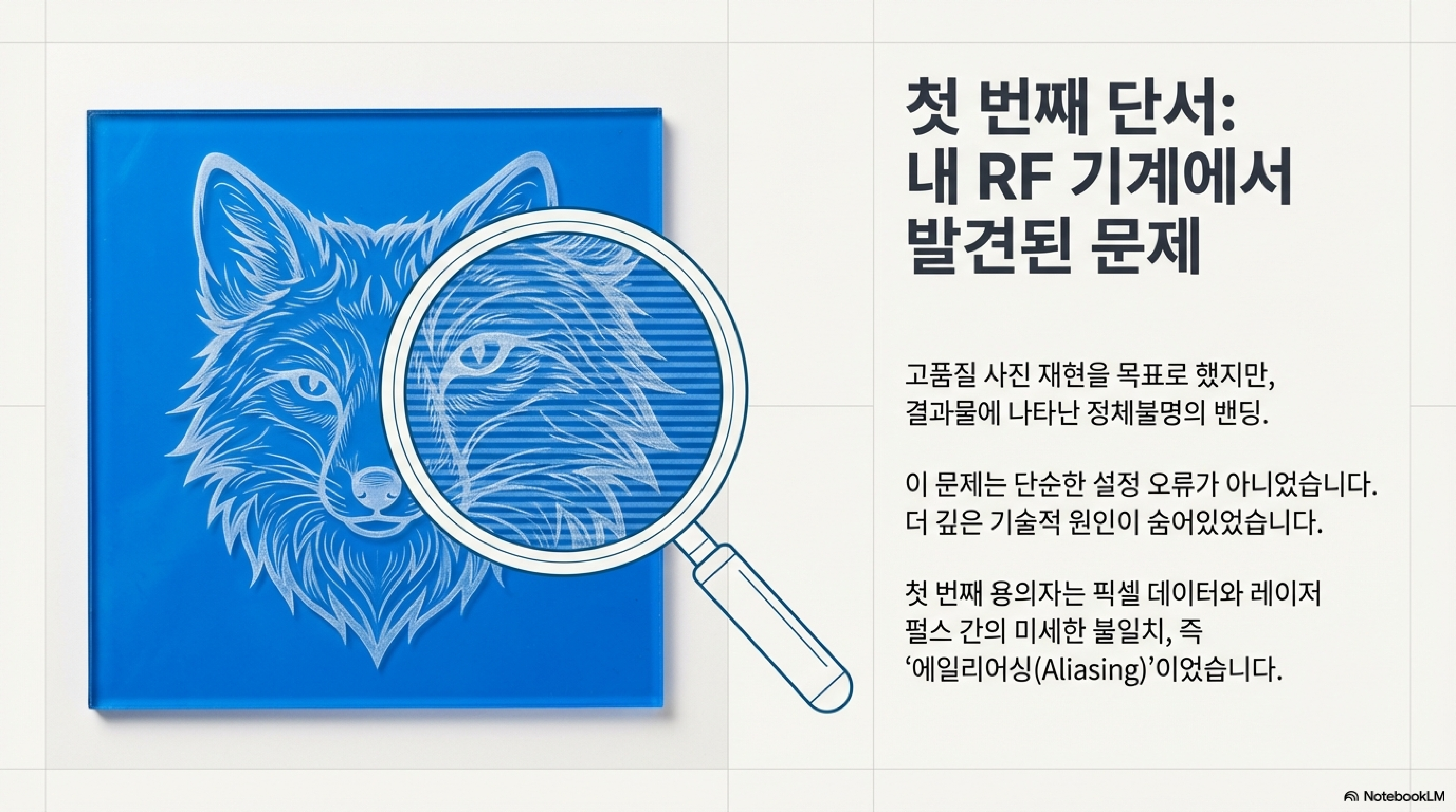 이 글에서는 레이저 각인의 품질을 저하하는 두 가지 주요 현상인 '에일리어싱(Aliasing)'과 '밴딩(Banding)'의 근본적인 원인을 파헤치고, 그 놀라운 해결책을 제시하고자 합니다. 이 글의 모든 분석은 'SarbarMultimedia'의 유튜브 영상에서 제시된 심층적인 실험과 통찰에 기반하고 있음을 밝힙니다.