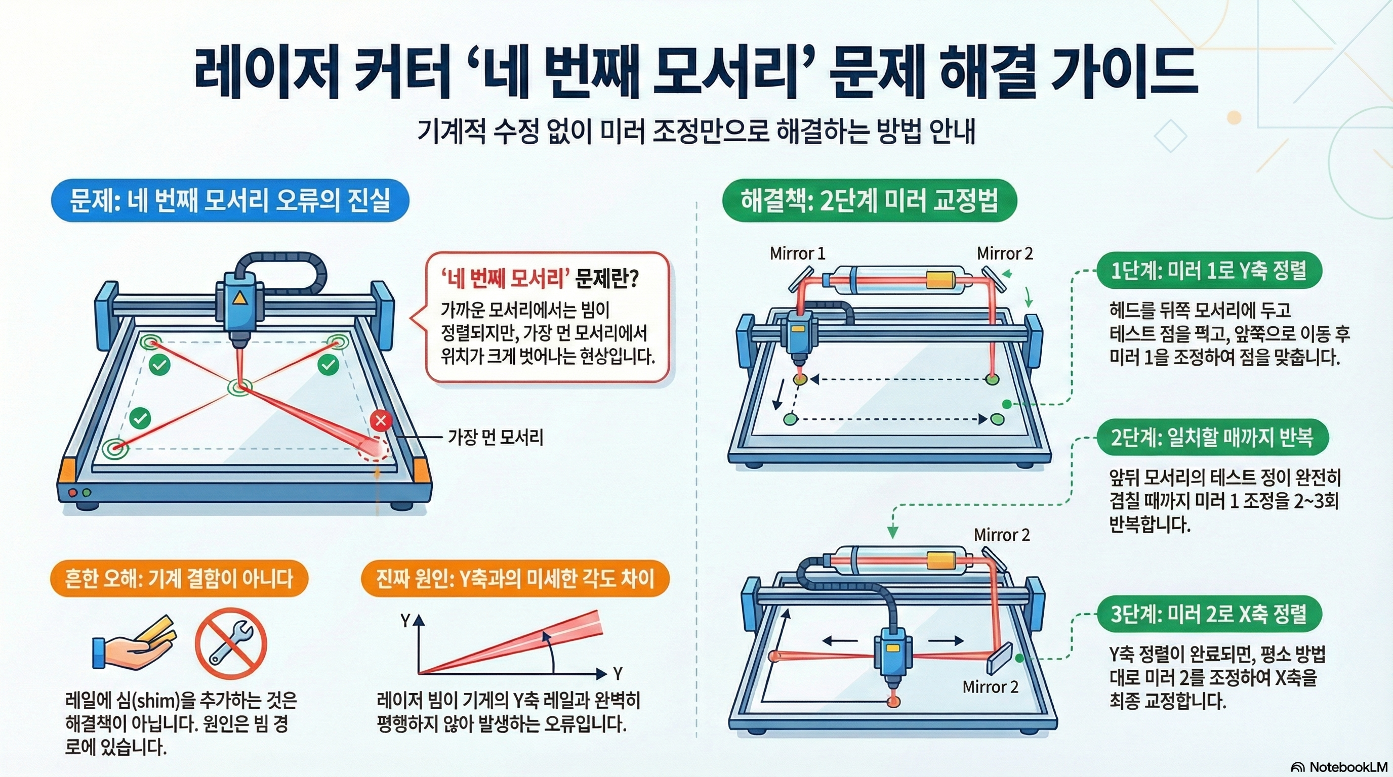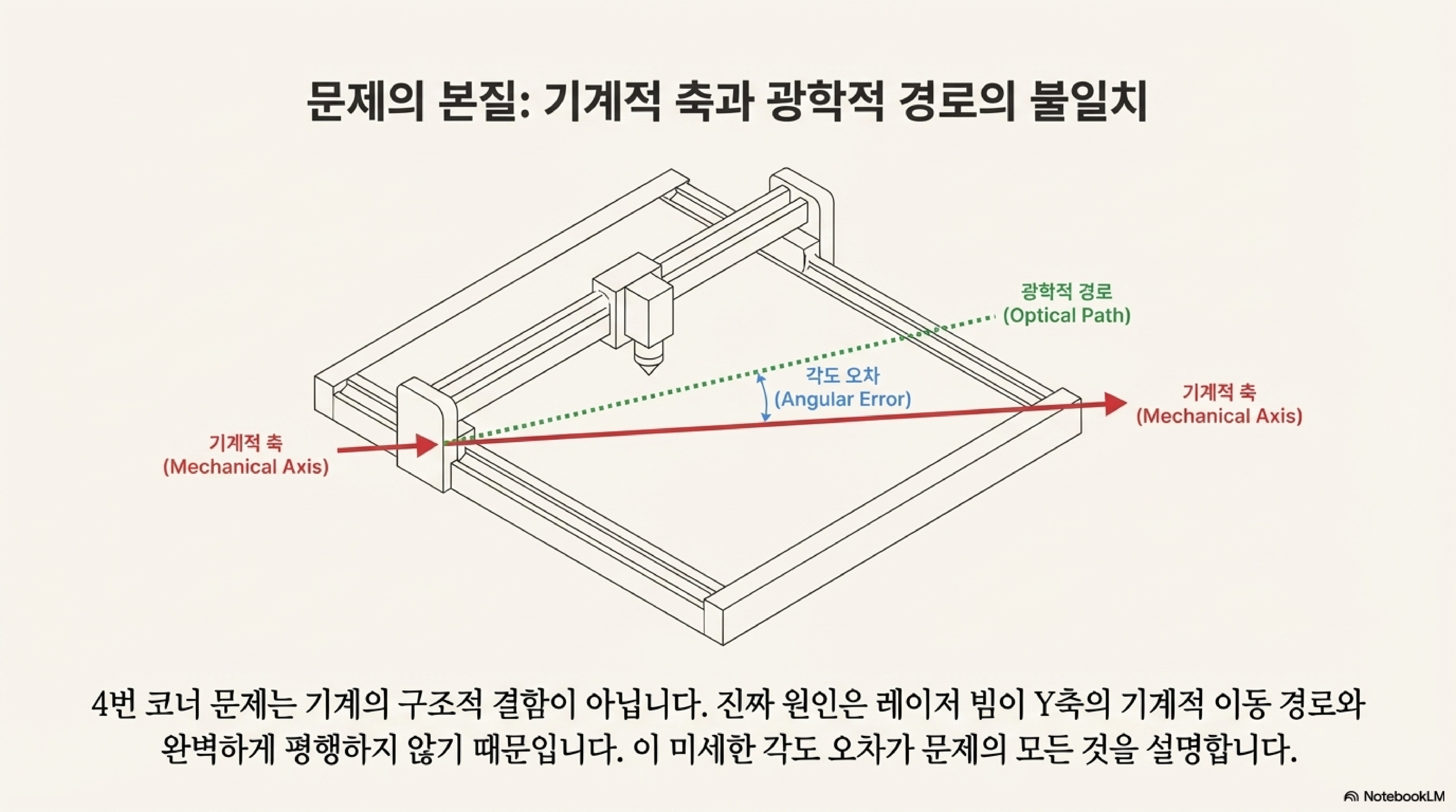 당신의 레이저 커터 '네 번째 모서리 문제', 레일에 심을 박아도 해결되지 않는 진짜 이유