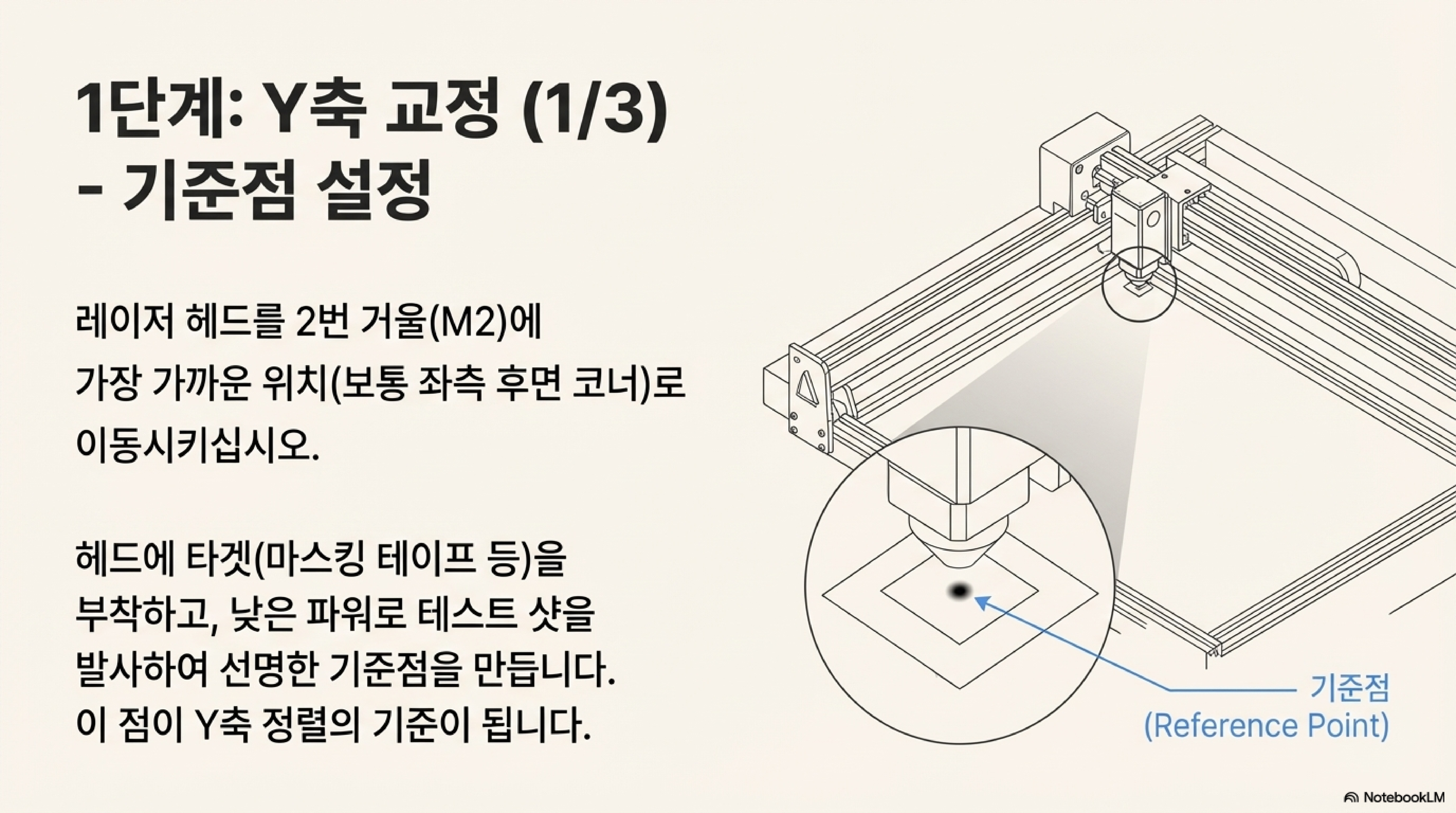 진짜 원인은 기계의 결함이 아니라, Y축 경로를 기계의 이동 경로와 완벽하게 평행으로 맞추는 데 실패한 사용자의 미세한 정렬 오차 때문입니다.