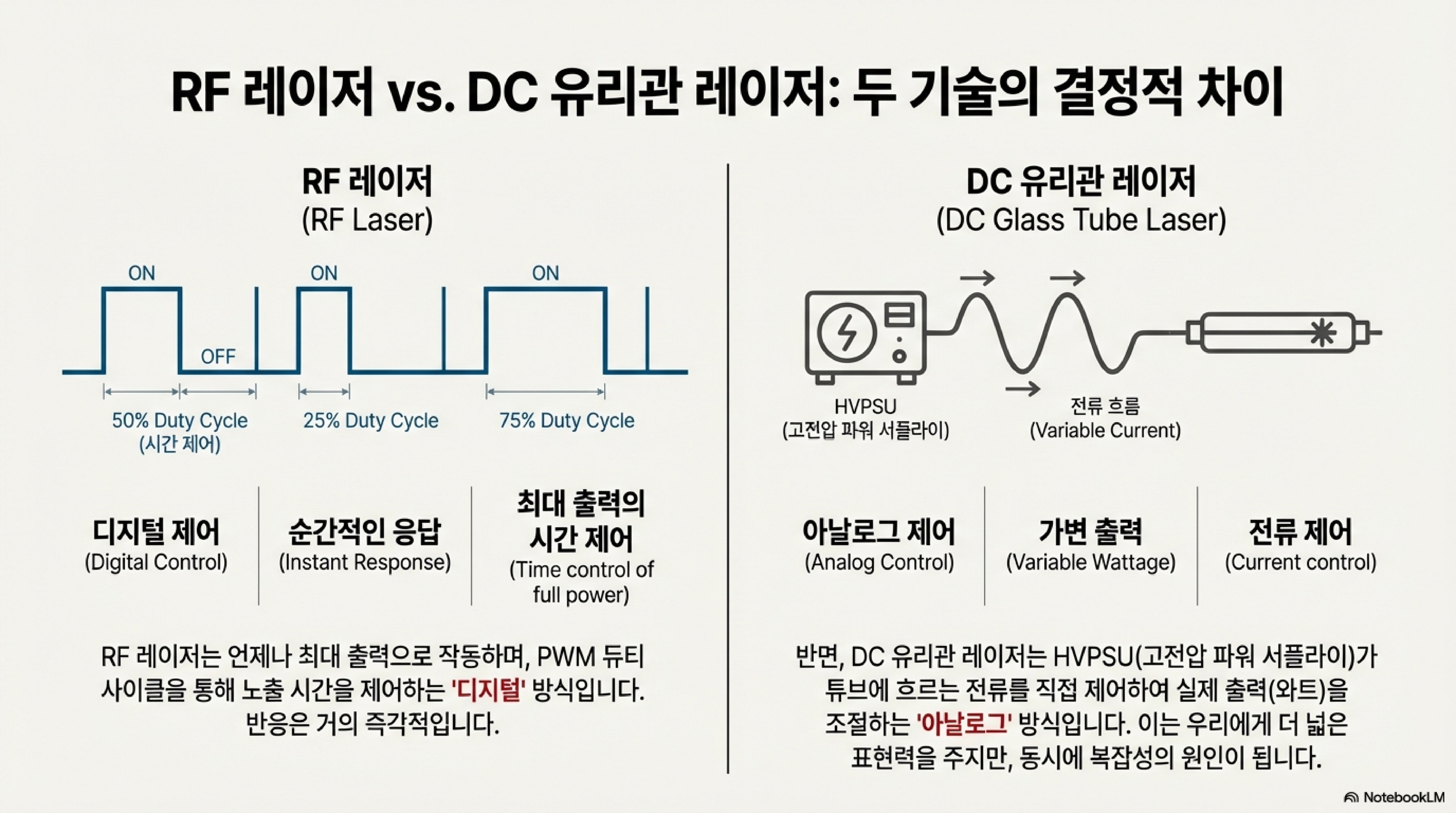 만약 이 문제의 원인이 단순히 설정값이나 기계 고장이 아니라, 당신이 사용하는 DC 글래스 튜브 레이저 시스템의 근본적인 물리적 특성에 있다면 어떨까요? 대부분의 사용자는 알지 못하는, 레이저 전원 공급 장치와 튜브 사이의 복잡한 상호작용 속에 그 비밀이 숨어있습니다.