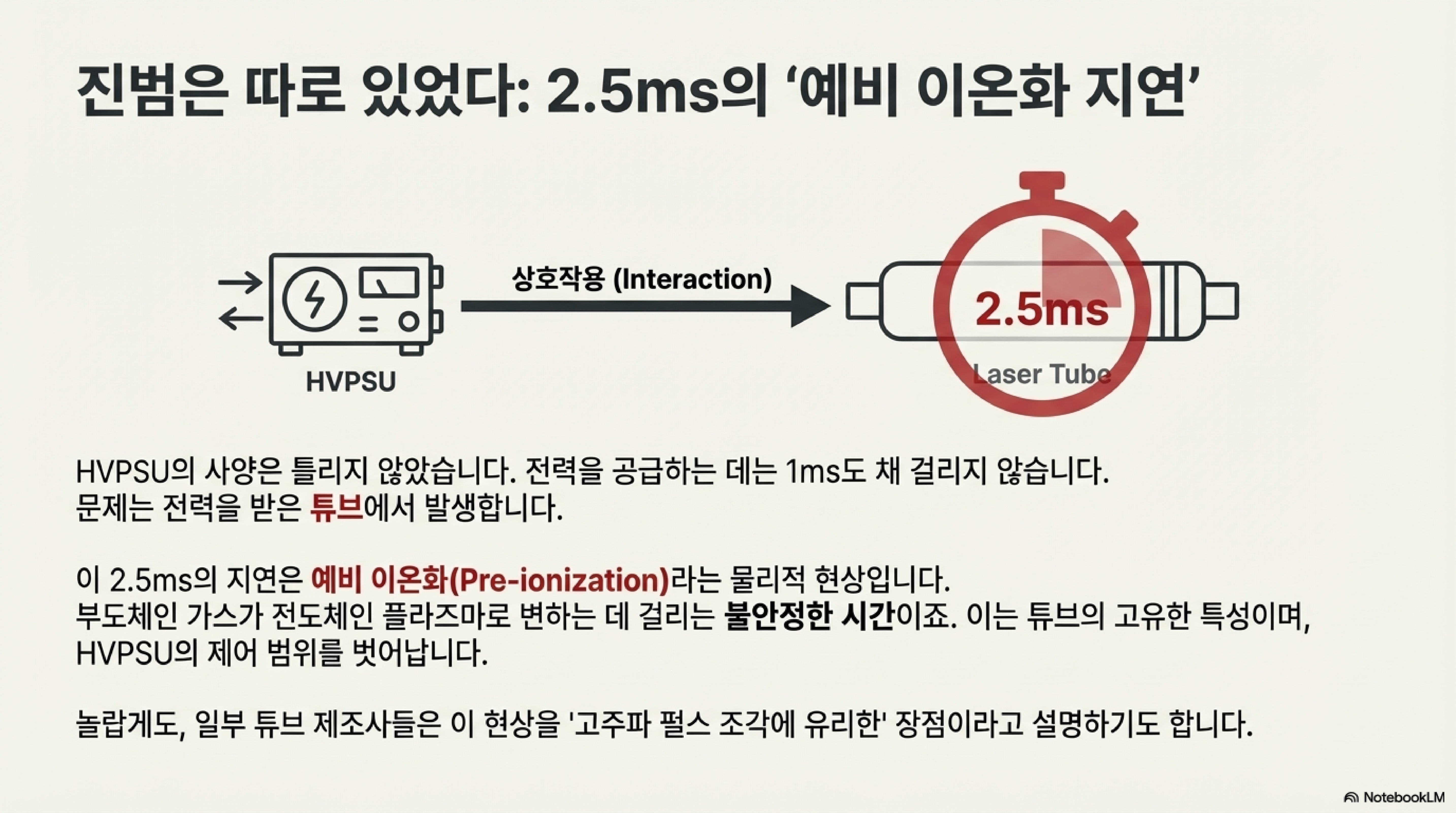 어쩌면 가장 놀라운 진실은 우리가 여태껏 엉뚱한 부품을 탓해왔다는 것일지도 모릅니다. 소스 영상의 저자는 번개가 마이크로초 단위로 치는 것처럼 튜브 내 가스의 이온화 자체는 거의 즉각적이며, 우리가 겪는 2.5ms의 긴 '예비 이온화' 지연은 사실 튜브가 아닌 전원 공급 장치의 제어 회로가 안정을 찾기 위해 고군분투하는 과정의 부산물일 수 있다는 급진적인 가설을 제시합니다.