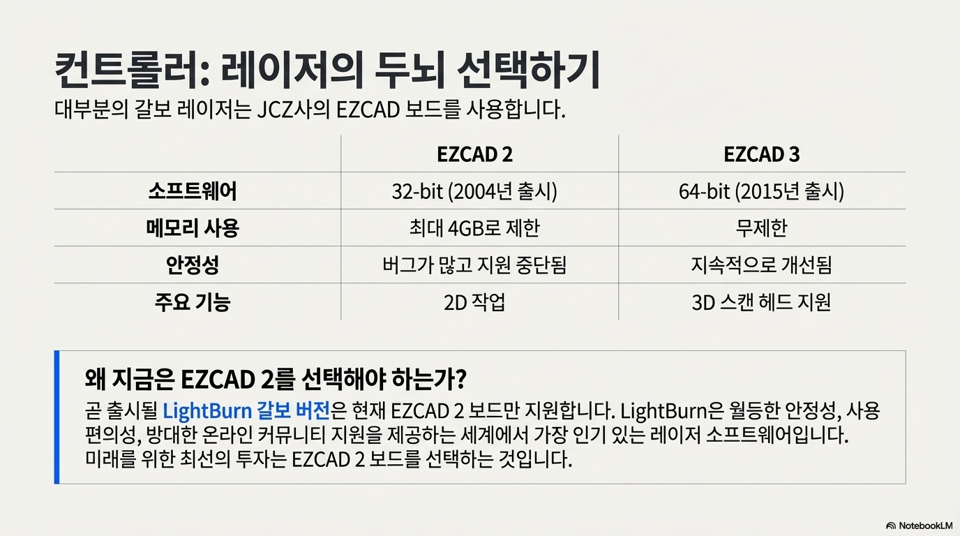 대부분의 기술 분야에서 '최신', '업그레이드'는 무조건 더 좋은 것을 의미합니다. 하지만 갈보 레이저 컨트롤러에서는 이 공식이 통하지 않을 수 있습니다. 놀랍게도 현재로서는 최신 EZ-CAD 3 보드보다 구형인 EZ-CAD 2 컨트롤러 보드를 선택하는 것이 더 현명한 전략일 수 있습니다.