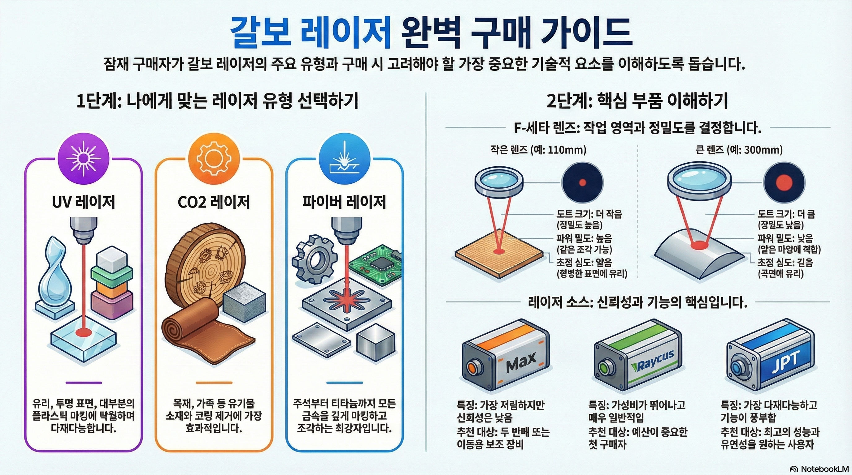 결국 현명한 갈보 레이저 구매는 단순히 가격이나 와트 수를 비교하는 것에서 끝나지 않습니다. 자신의 주된 작업 목적을 명확히 하고, 그 목적에 맞는 기술적 특성을 깊이 이해하는 것이 핵심입니다.