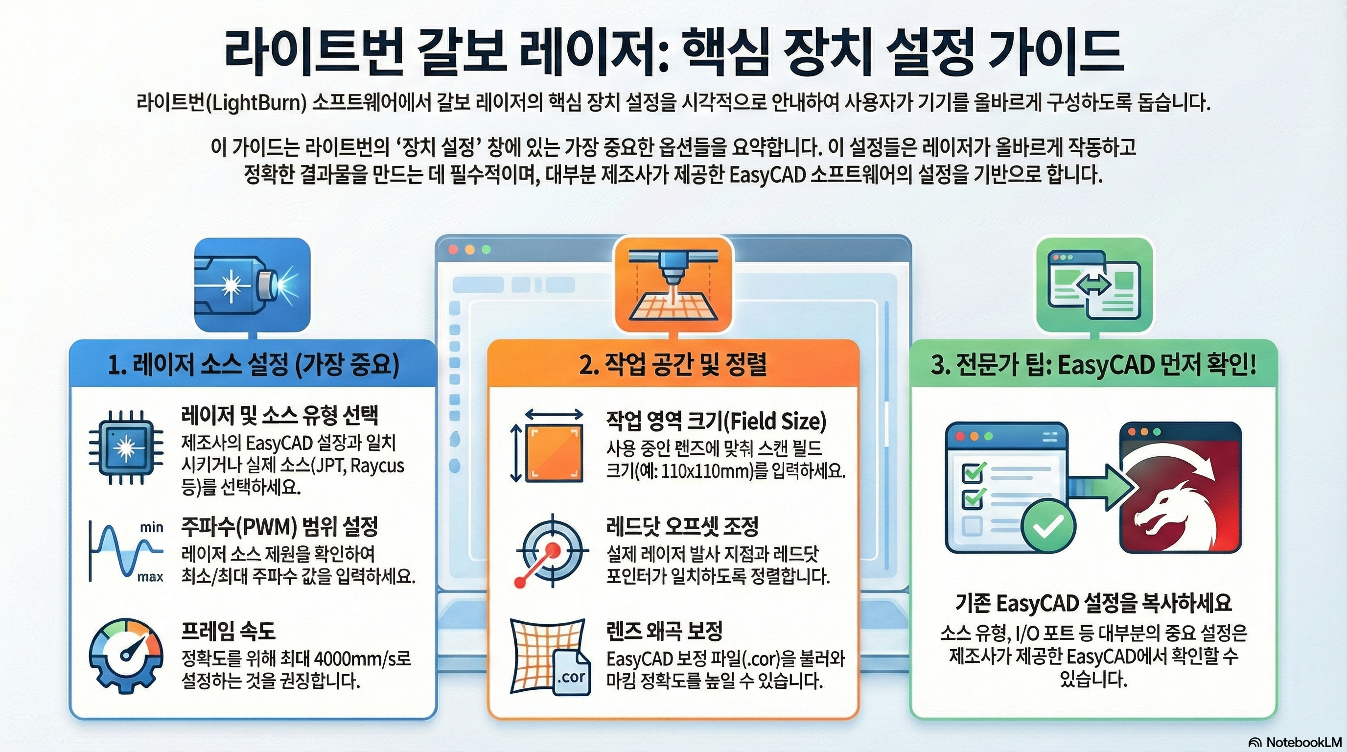 레이저 장비용 소프트웨어 LightBurn을 처음 열었을 때, 수많은 설정 메뉴 앞에서 막막함을 느껴본 적 있으신가요? 특히 갈보 레이저 설정은 복잡하고 혼란스러울 수 있습니다. 대부분의 사용자는 제조업체 문서나 일반적인 튜토리얼에 의존하지만, 거기에는 종종 핵심적인 내용이 빠져 있습니다. 이 글에서는 단순히 설정을 나열하는 것을 넘어, 전문가들도 쉽게 놓칠 수 있는 가장 놀랍고 직관에 반하는 5가지 비밀을 파헤쳐 보겠습니다. 이 설정들은 단순히 편의를 위한 것이 아니라, 여러분의 값비싼 장비 성능을 100% 활용하고, 작업물의 품질을 결정하며, 심지어는 장비의 오작동을 막는 핵심 열쇠입니다. 이 팁들을 통해 여러분의 LightBurn 갈보 설정을 한 단계 끌어올릴 수 있을 것입니다.