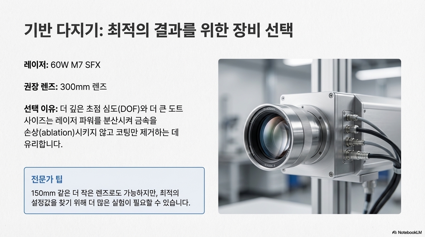 - 더 큰 도트 크기(Larger dot size): 레이저의 파워가 분산되어 금속 자체를 손상시키지 않으면서 페인트 같은 코팅층만 효과적으로 제거하는 데 이상적입니다.