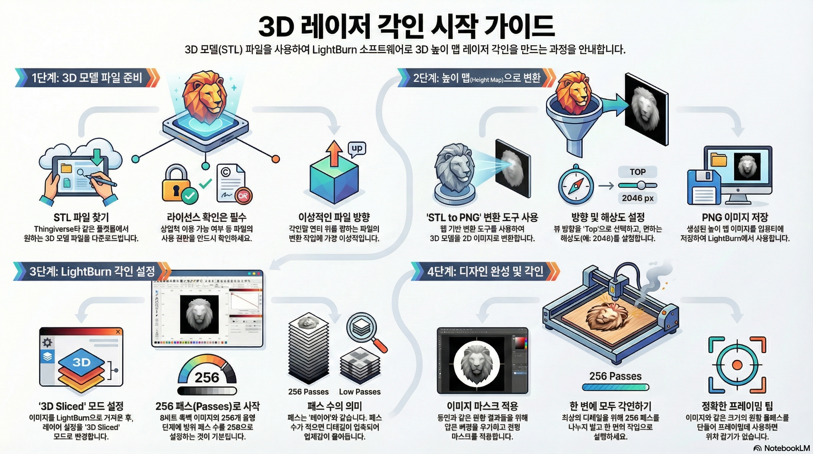따라서 성공적인 3D 각인을 위해서는 3D 모델 파일(STL 등)을 적절한 높이 지도로 변환하는 과정이 반드시 필요합니다.