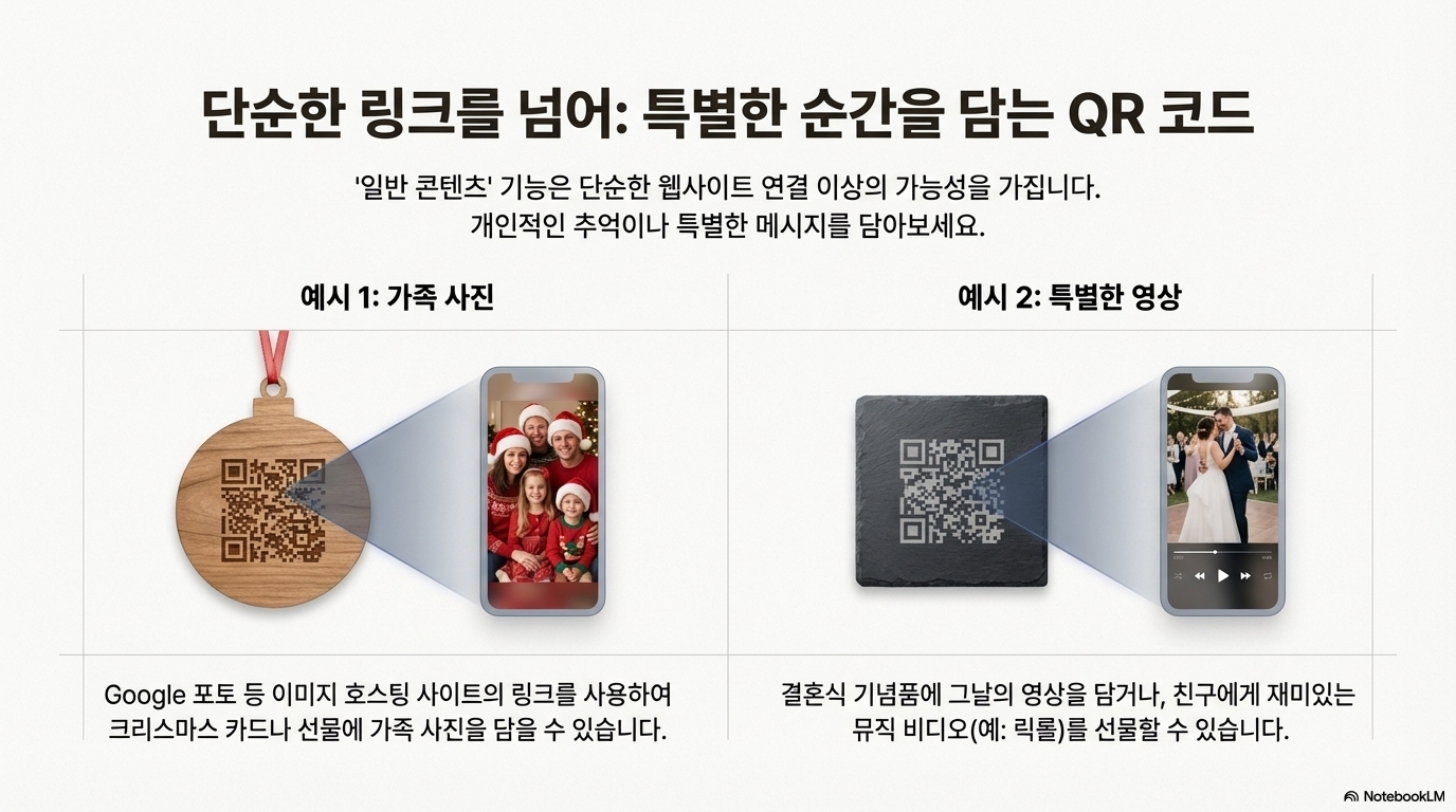 흥미로운 점은, 입력하는 정보가 많아질수록 QR 코드 패턴의 밀도가 높아지고 시각적으로 더 복잡해진다는 것입니다. 이는 더 많은 데이터를 담고 있다는 시각적 증거이기도 합니다.