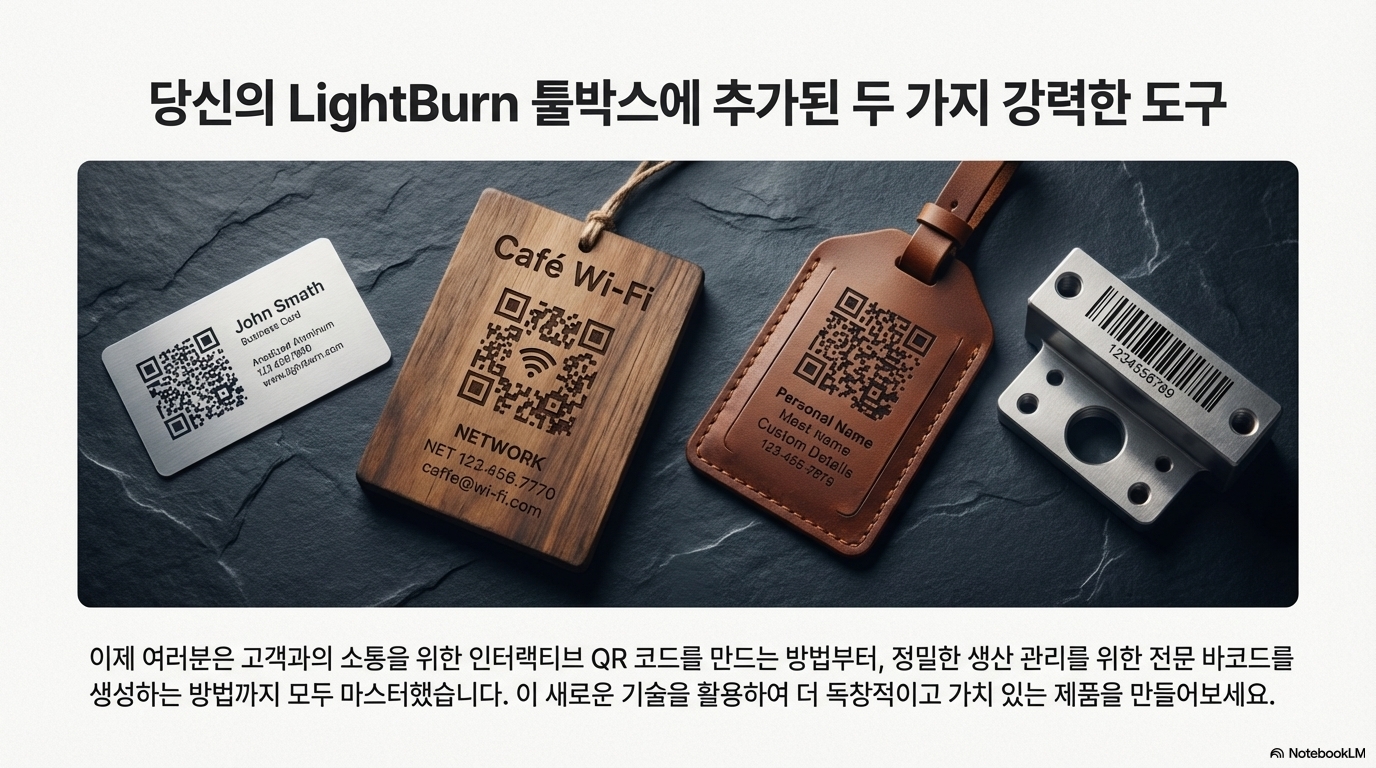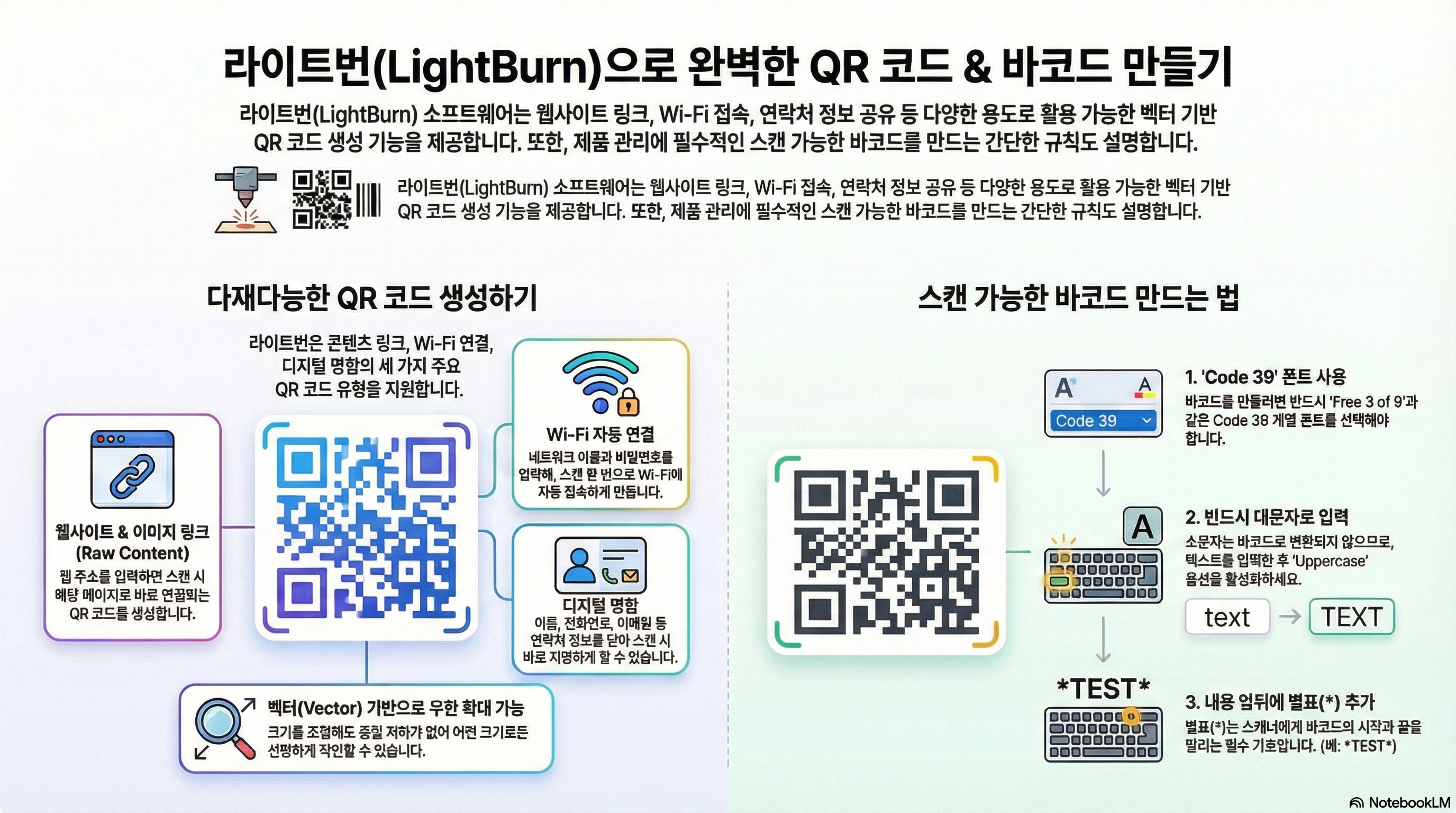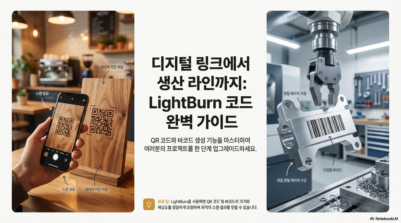 일상 속에서 QR 코드는 이제 너무나도 익숙한 존재가 되었습니다. 결제를 하거나, 웹사이트에 접속하거나, 정보를 확인할 때 우리는 무심코 스마트폰을 꺼내 QR 코드를 스캔합니다. 하지만 레이저 각인 소프트웨어인 라이트번(LightBurn) 안에서 외부 도구 없이도 강력하고 다재다능한 QR 코드와 바코드를 직접 만들 수 있다는 사실을 알고 계셨나요?