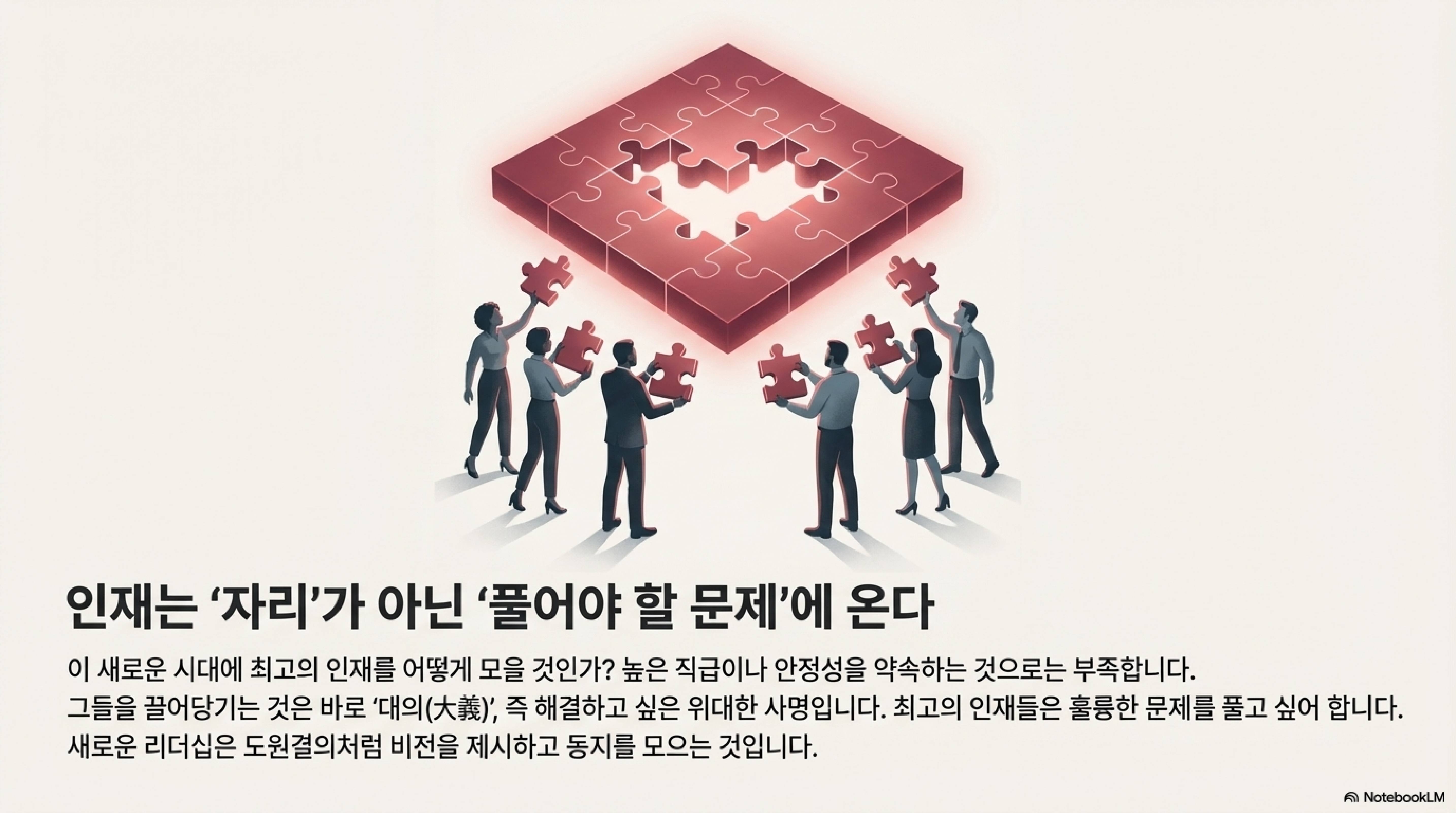 이제 우리가 스스로에게 던져야 할 질문은 '어느 회사에 들어가야 할까?'가 아니라 '나는 세상의 어떤 문제를 해결하기 위해 존재하는가?'일지 모릅니다. 당신의 '대의(大義)'는 무엇입니까?