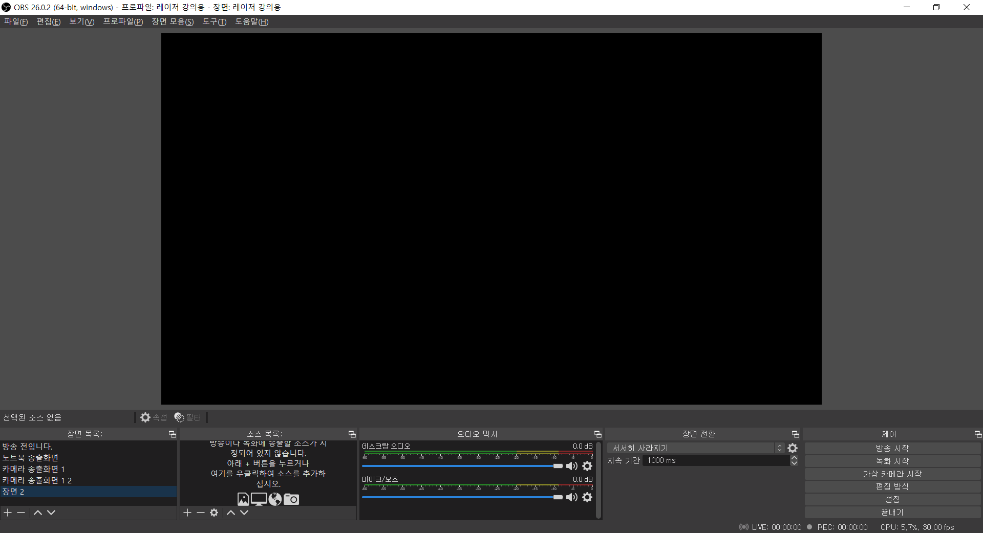 셋째, OBS프로그램을 세팅한다.