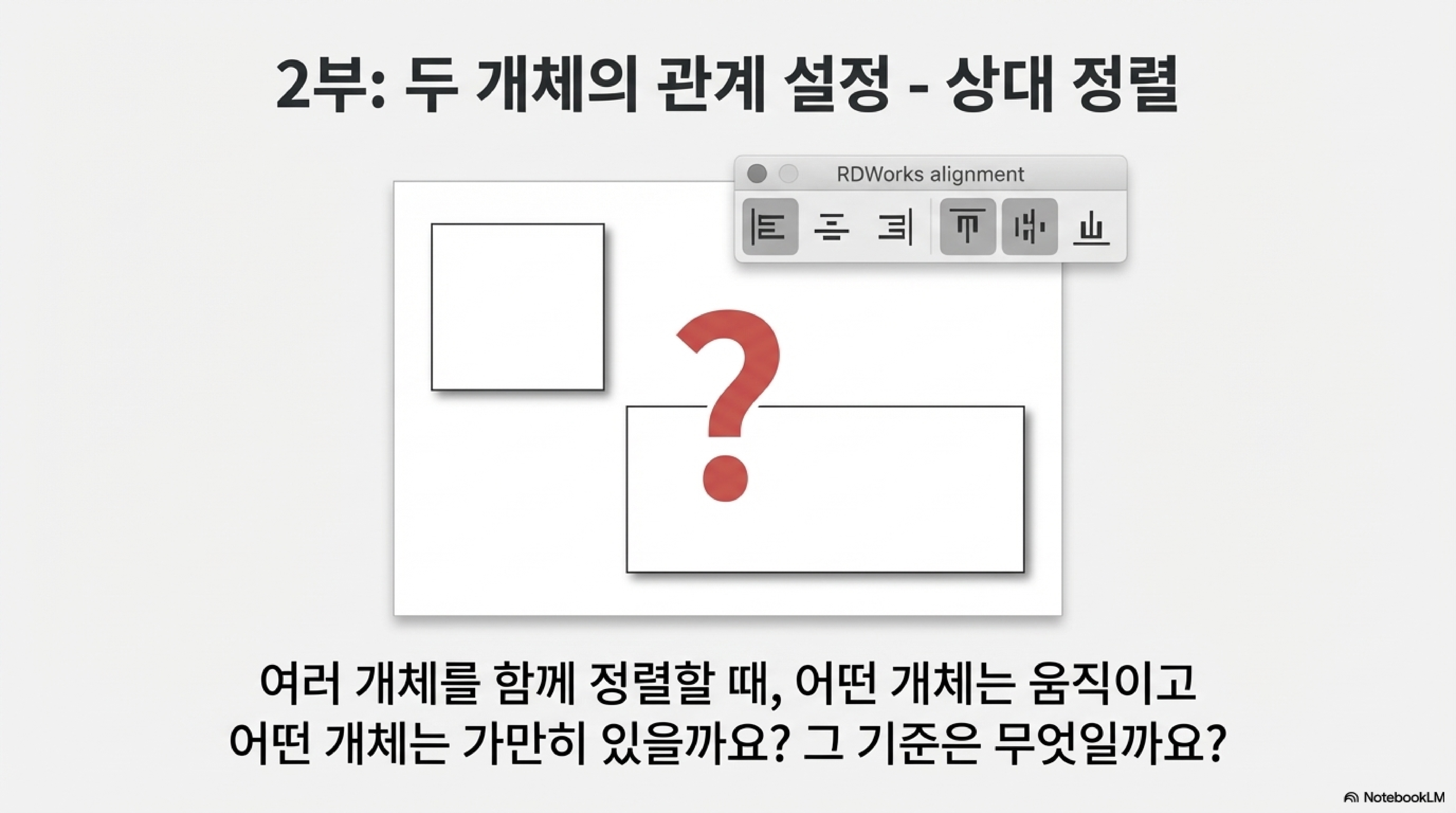 RDWorks 정렬의 핵심은 '어떤 객체가 기준이 되는가'입니다. 기본적으로는 마지막에 그린 객체, Shift 키를 사용하면 마지막에 선택한 객체가 바로 그 기준, 즉 '자석'이 됩니다.