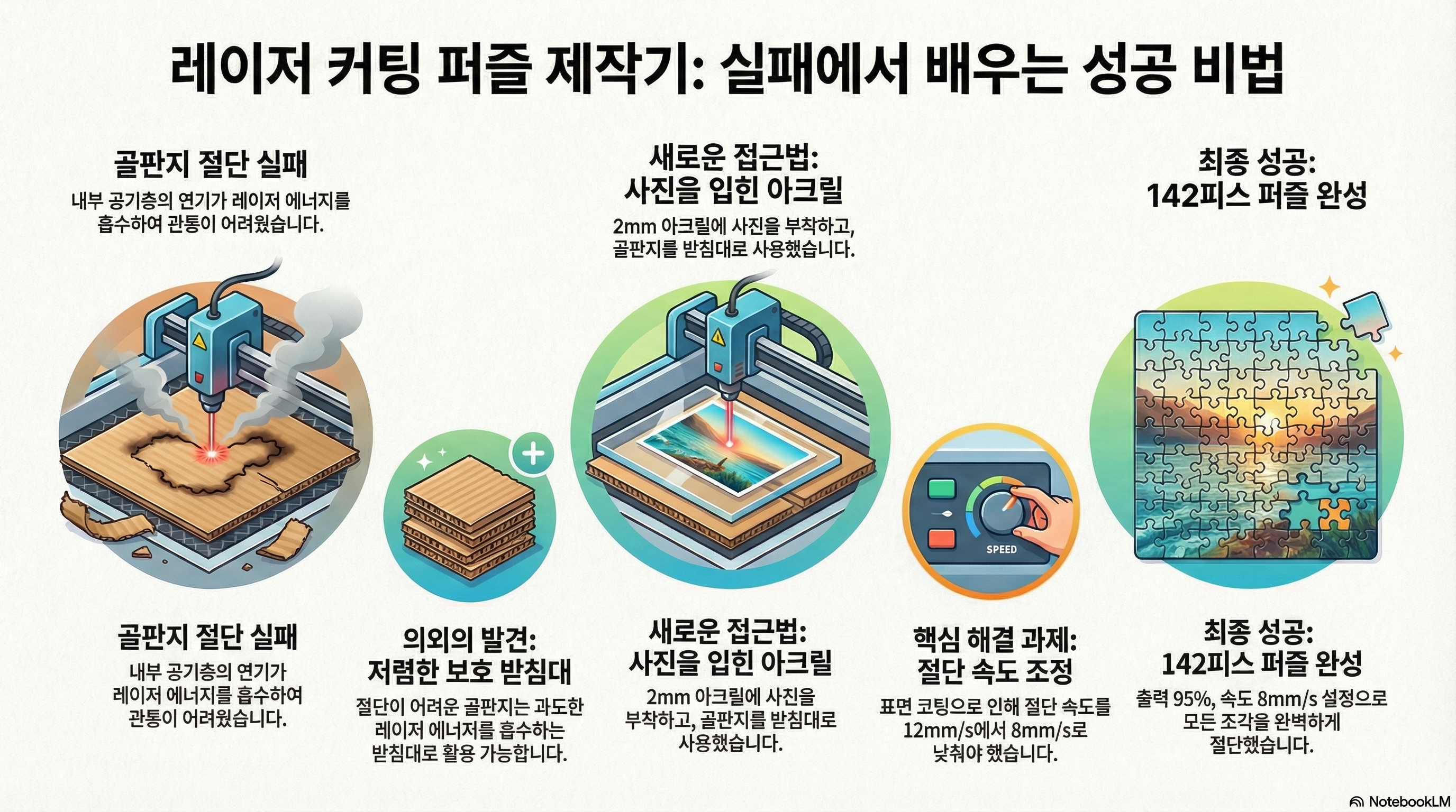 창의적이거나 기술적인 프로젝트를 진행해 본 사람이라면 누구나 공감할 만한 순간이 있습니다. 골판지를 자르는 것처럼 지극히 단순해 보이는 작업이 예상치 못하게 실패했을 때의 그 좌절감 말입니다. 저 역시 레이저 커터로 직소 퍼즐을 만드는 간단한 프로젝트를 시작했다가 연속적인 실패를 맛봐야 했습니다.
