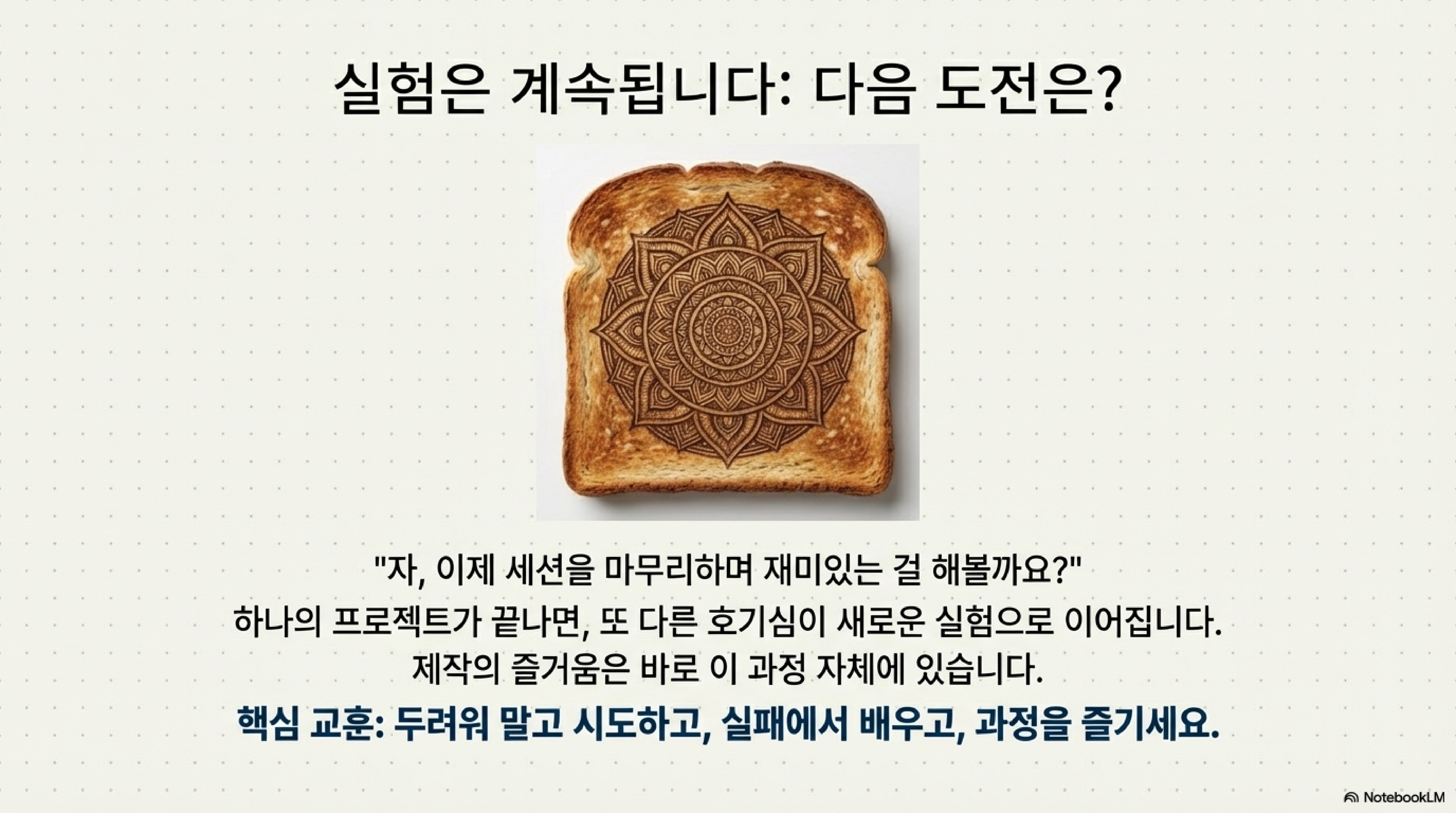 프로젝트 초반의 실패는 단순한 걸림돌이 아닙니다. 오히려 가장 가치 있는 배움과 혁신의 원천이 될 때가 많습니다. 골판지 절단의 어려움에서 새로운 활용법을 발견하고, 재료 조합의 변수를 몸소 체험하며, 끈기 있는 시도 끝에 성공에 도달한 이 경험은 그 어떤 성공 사례보다 더 값진 교훈을 남겼습니다.
