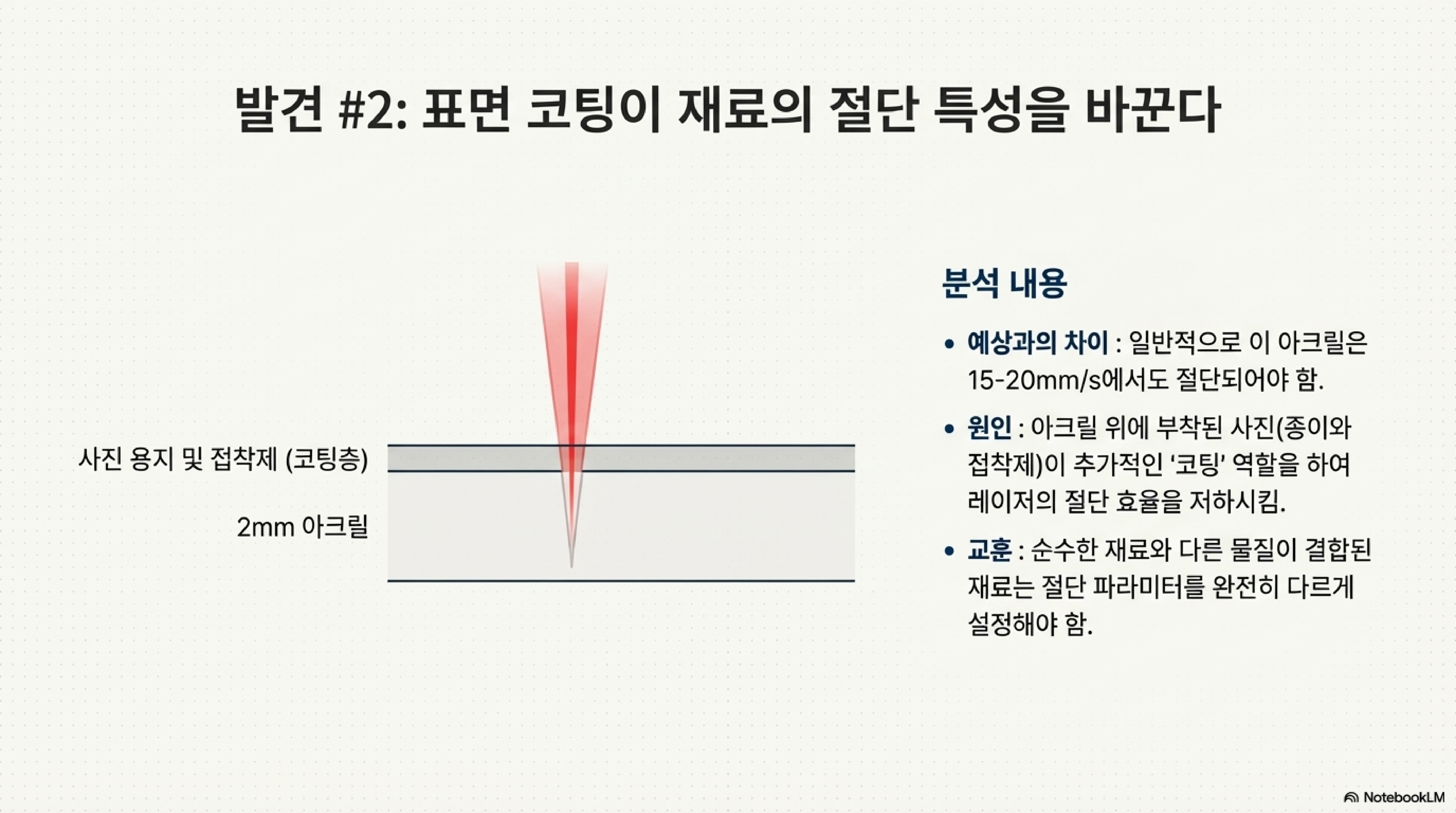 골판지 절단 실패는 좌절감을 안겨주었지만, 동시에 긍정적인 깨달음으로 이어졌습니다. 레이저 에너지를 효과적으로 흡수하는 골판지의 특성은, 역으로 생각하면 훌륭한 '받침 재료(backing material)'가 될 수 있다는 의미였습니다.