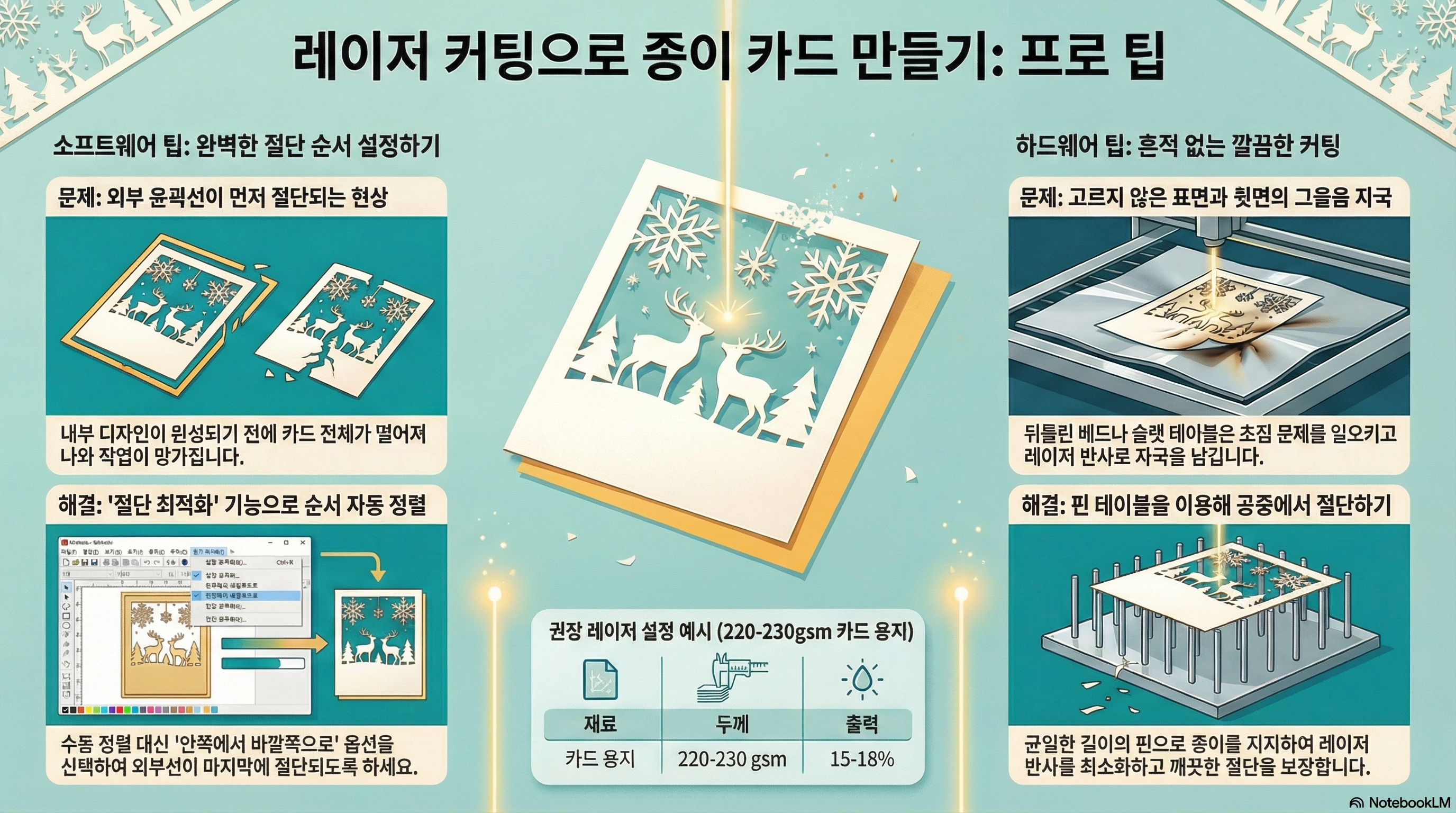 이 글에서는 한 숙련된 엔지니어가 직접 크리스마스 카드를 제작하는 과정에서 발견한, 표면적으로는 잘 드러나지 않지만 결과물을 완전히 바꿔놓는 3가지 핵심 비밀을 공개합니다. 이 원칙들을 이해하면 여러분의 종이 레이저 커팅 작업 수준을 한 단계 끌어올릴 수 있을 것입니다.